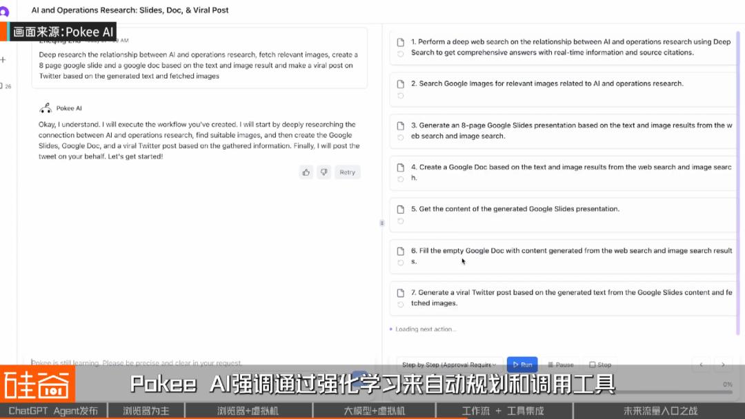 这里 AI 负责理解内容和写邮件,但从触发表单到发送邮件的步骤是事先定好的。类似地,Pokee AI 强调通过强化学习来自动规划和调用工具。
