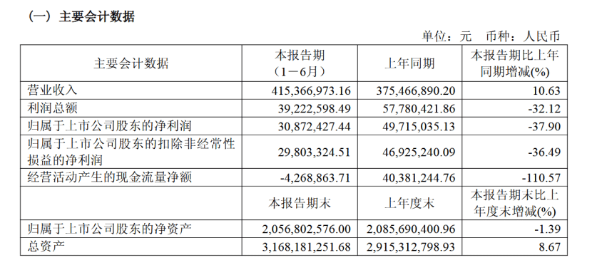 其半年报显示,报告期内,八亿时空实现营业收入 4.15 亿元,同比增长 10.63%;归母净利润为 0.31 亿元,同比下降 37.90%;扣非净利润为 0.30 亿元,同比下降 36.49%。