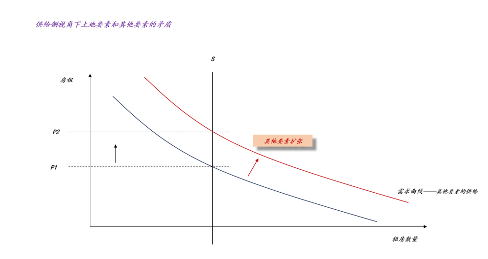 如上图所示,根据瓦尔拉斯定律,其他要素的供给构成了租房的需求,因此,如果租房的供给曲线缺乏弹性,当其他要素快速扩张时 (ps:5% 的潜在经济增速代表了其他要素的扩张),我们会观察到房租从 P1 上升到 P2。