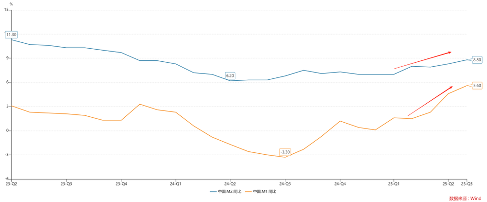 所以,我们才能看到 M1 和 M2 增速的回升,央行愿意把 M2 增速做起来,也特别想要把 M2 增速做起来。(ps:但是不少不学无术的分析师把货币宽松简单地等价于降准降息,何其可笑!?事实上,实体经济的货币宽松就是 M2 增速提高。有时候需要收紧银行间流动性,有时候需要放松,没有简单的线性因果)