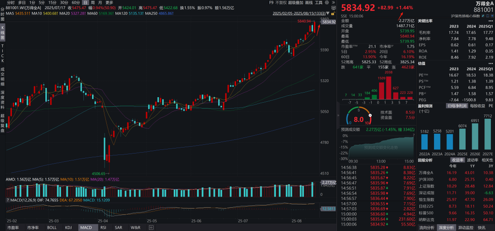 不少投资者认为,股票市场会因为这份数据调整;结果万得全 A 大涨 1.44%,完成反包。