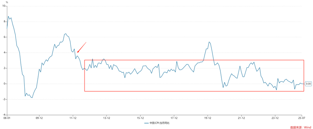 我们从 2011 年就开始实施稳健的货币政策,一直持续到 2024 年。如上图所示,在这 14 年间,中国的 CPI 增速一直被压制在一个较低区间,为供给侧改革争取了宝贵的时间。