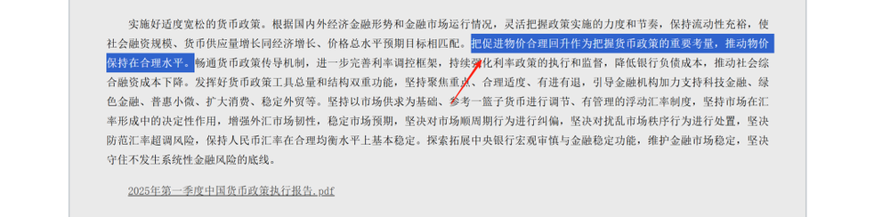 与此同时,央行在 2025 年一季度的货币开始提 「促进物价合理回升作为把握货币政策的重要考量,推动物价保持在合理水平。」