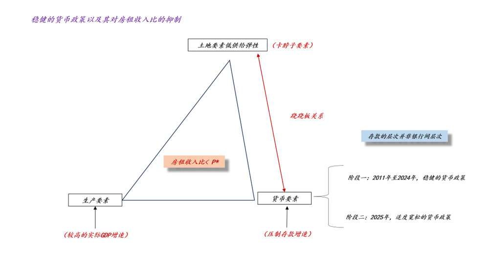 对于生产要素,我们要大力鼓励其扩张,它对应于我们的实际 GDP 增速;对于货币要素,我们可以用来作为对冲工具来抑制租房的需求曲线快速扩张。