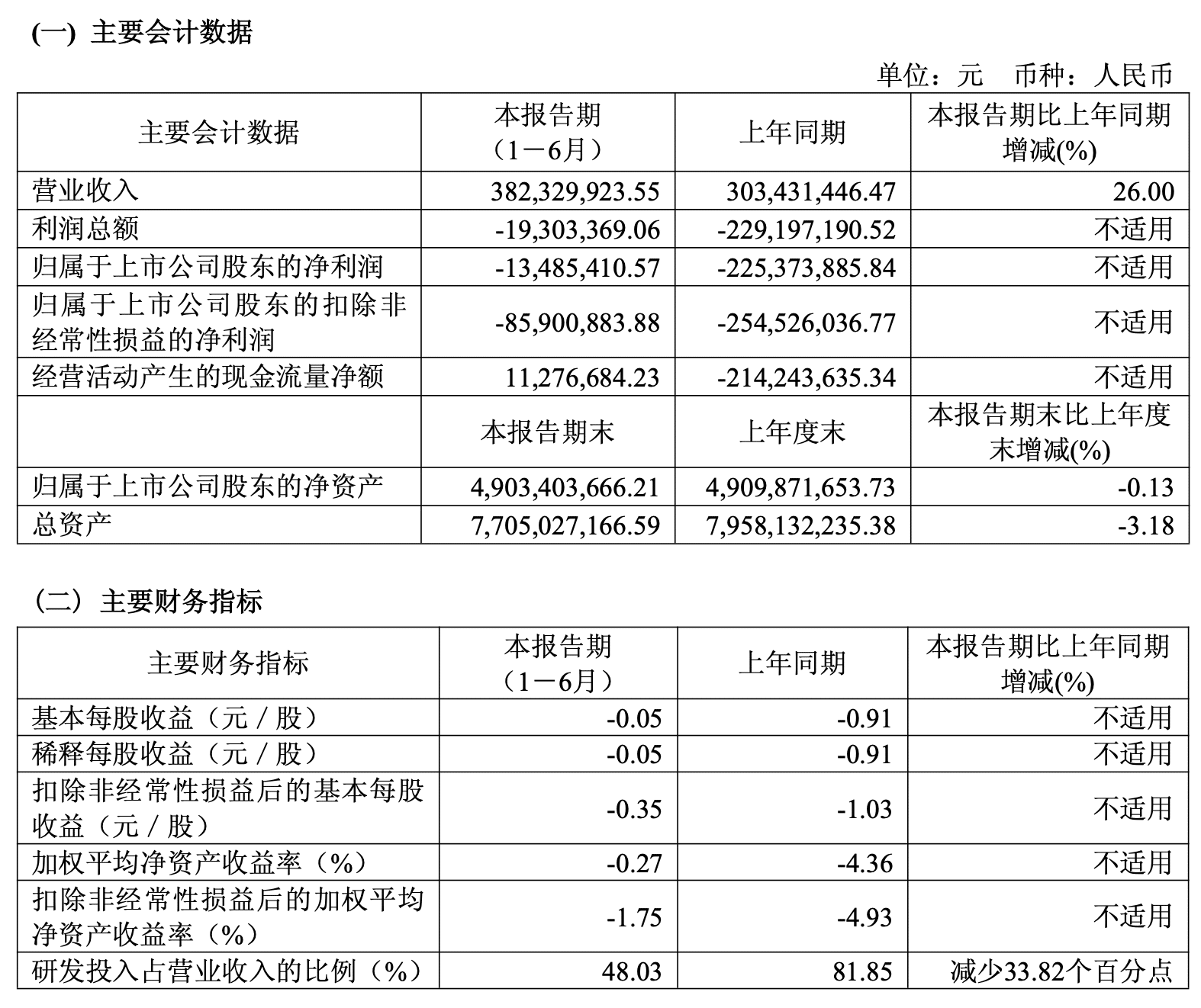 报告期内,其研发投入为 1.84 亿元,较上年同期下降 26.06%;研发投入总额占营收比例 48.03%,同比减少 33.82 个百分点,主要因公司将研发资源聚焦于高潜研发项目,进一步提升了研发效率。