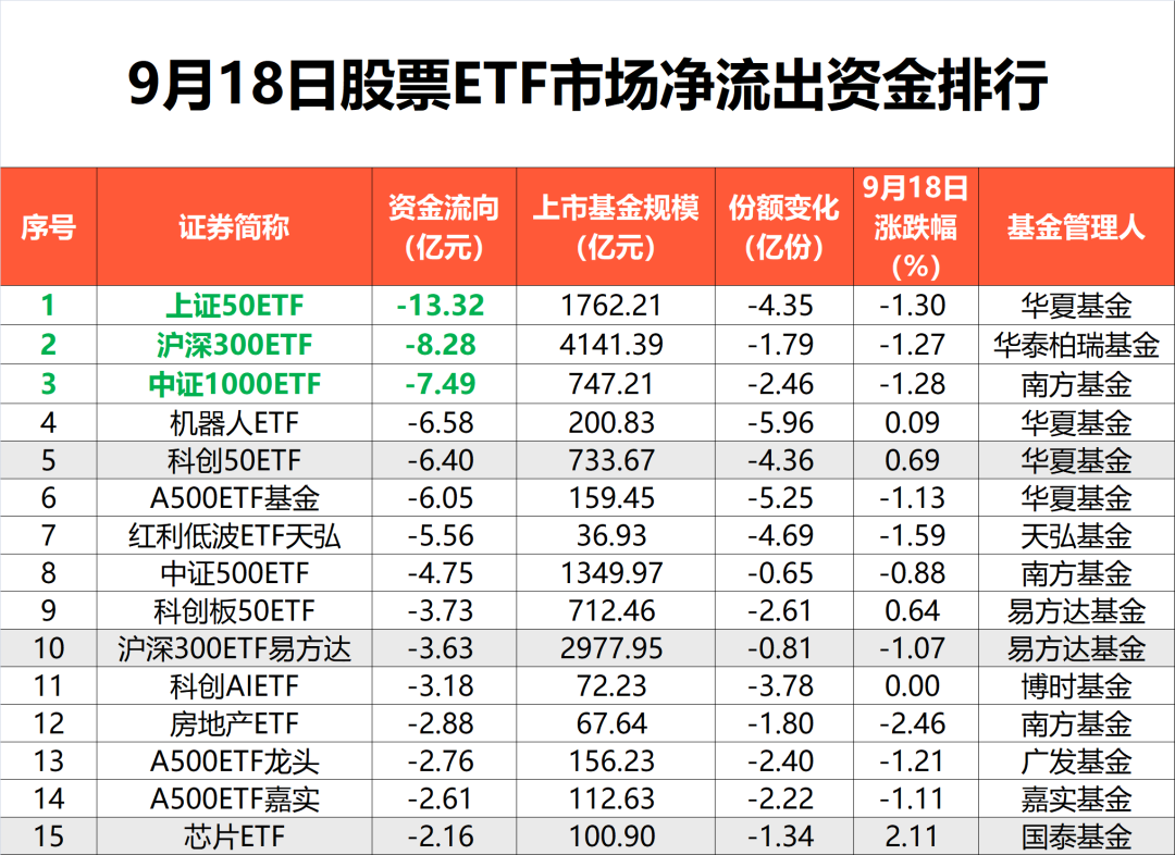 除了宽基 ETF,机器人 ETF、红利低波 ETF 天弘、科创 AIETF 等多只产品也出现净流出。
