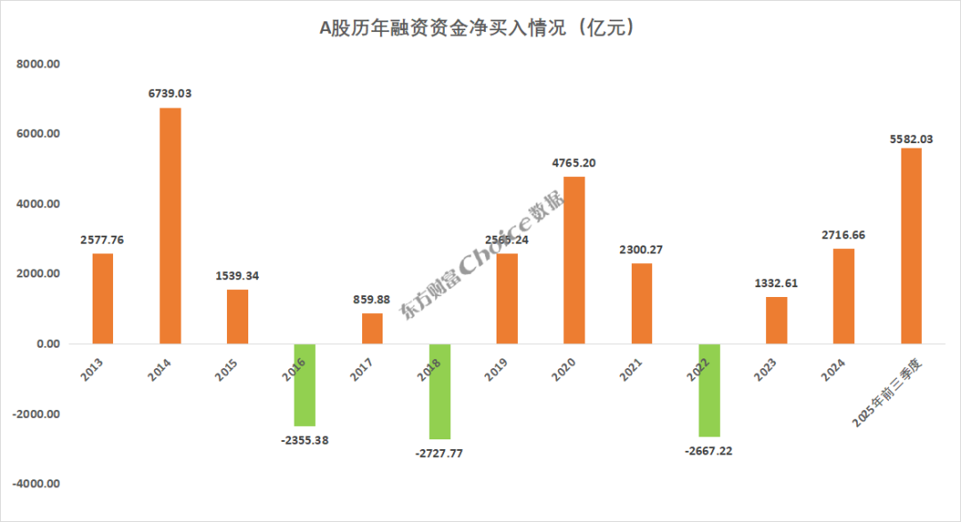 三季度,A 股市场获融资资金净买入 5741.14 亿元 (截至 9 月 29 日),前三季度累计净买入 5582.03 亿元,逼近 2014 年 6739 亿元的历史峰值。