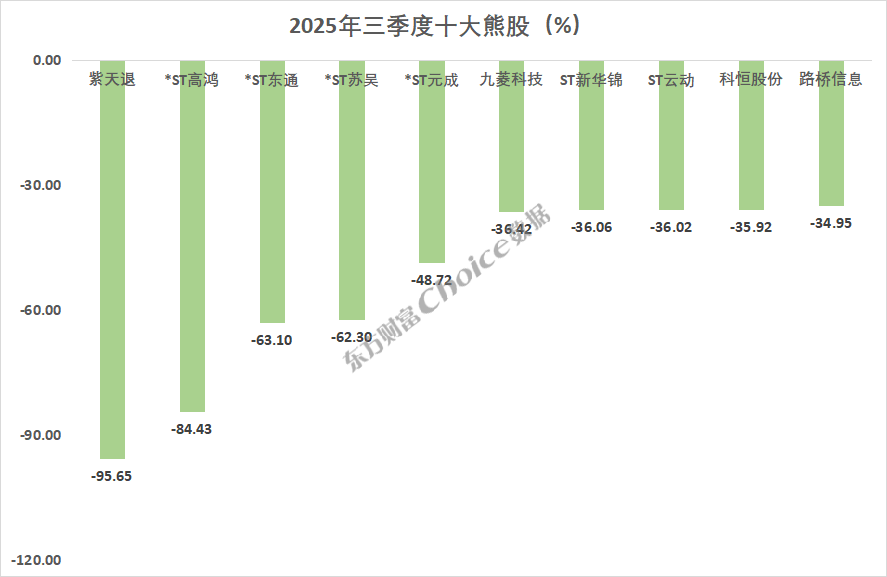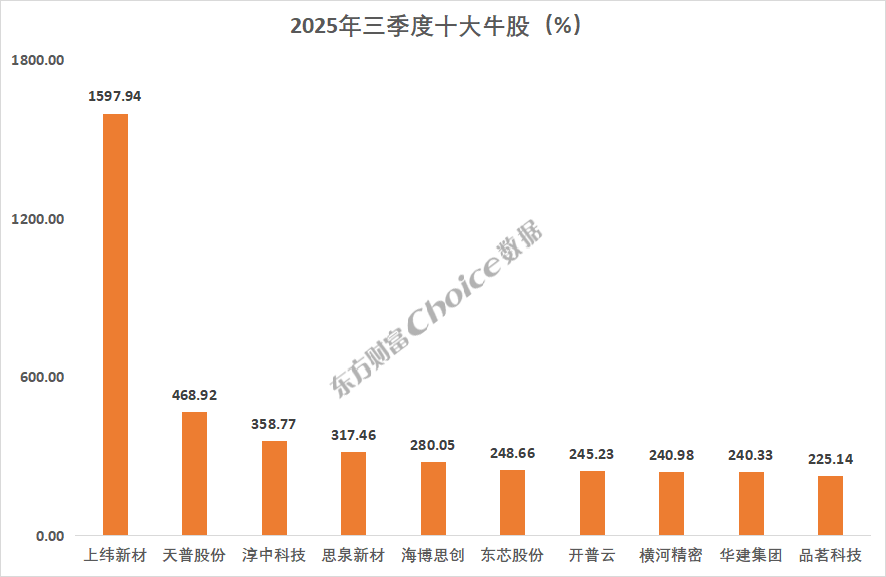 三季度,全部 5436 只 A 股中共 3887 只个股上涨,1538 只个股下跌。剔除年内上市新股,共 96 只个股涨幅超过一倍,上纬新材以 1597.94% 的涨幅位居三季度个股涨幅榜榜首;天普股份、淳中科技分别上涨 468.92%、358.77%,排名第二、第三。