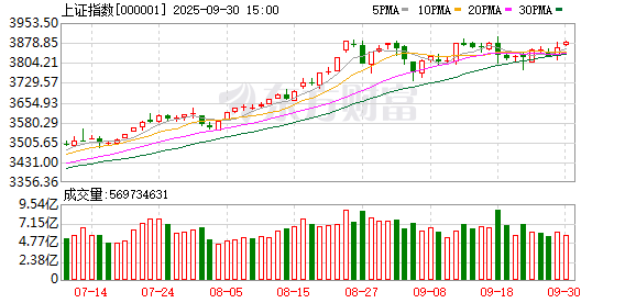 数据显示,截至 9 月 30 日收盘,上证指数报 3882.78 点,单月上涨 0.64%;深证成指报 13526.51 点,单月上涨 6.54%;创业板指报 3238.16 点,单月上涨 12.04%。