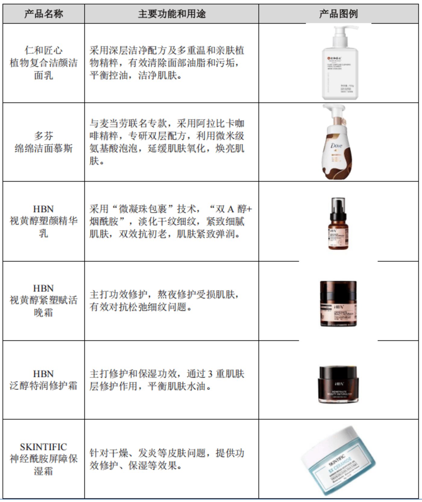 芭薇股份招股书显示,公司累计为 1000 多个化妆品品牌提供产品及服务,其中不乏联合利华、仁和匠心、HBN、丸美等知名品牌,公司代工的主要产品包括仁和匠心植物复合洁颜洁面乳、HBN 视黄醇素颜精华乳、凡士林淡纹润润唇膏、丸美奢颜焕采基底精华面膜等。