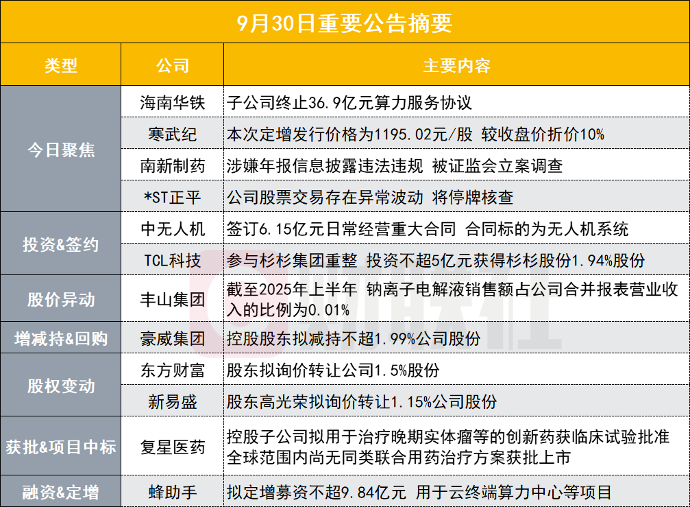 突发!190 亿人工智能概念股子公司终止 36.9 亿元算力服务协议|盘后公告集锦