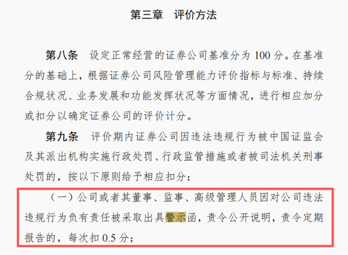 目前来看,2025 年度券商分类评价结果刚出炉不久,国融证券 2026 年结果或先要扣分了。对于券商而言,罚单一般会带来扣分,并最终影响公司的分类评价结果。根据最新版评价规定,券商公司或者其董事、监事、高级管理人员因对公司违法违规行为负有责任被采取出具警示函,责令公开说明,责令定期报告的,每次扣 0.5 分。