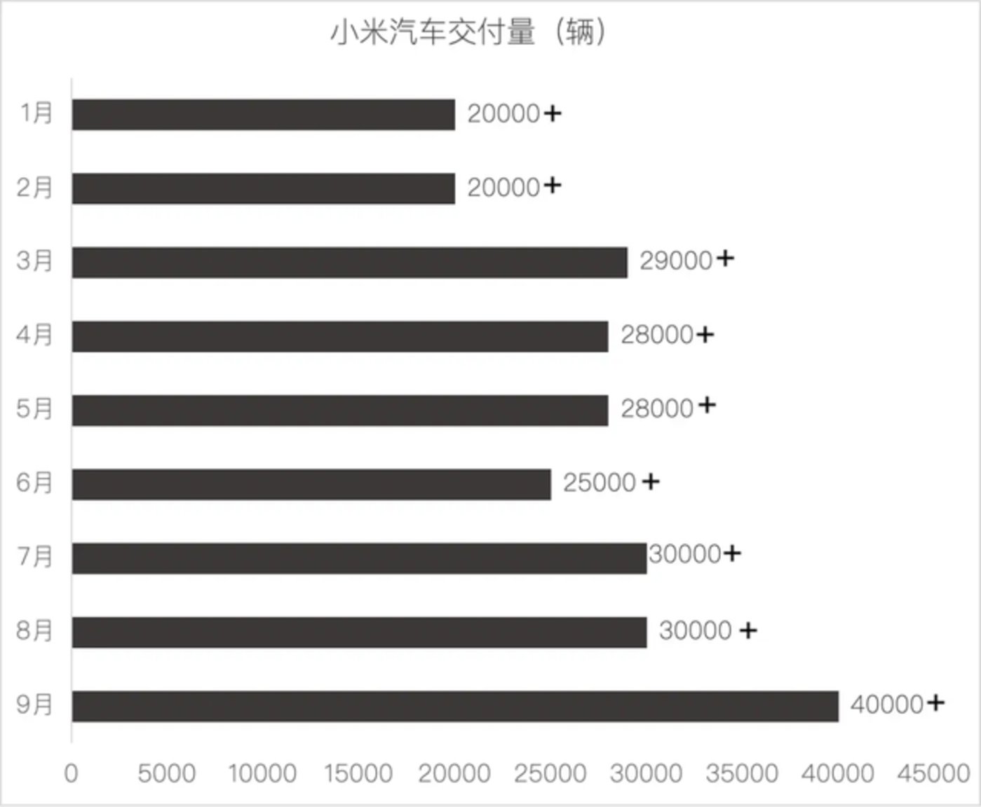 小米汽车单月交付首次超过 4 万台,相比 8 月的超 3 万台,环比增长超过 33%,这个销量让小米在新势力排名中超越了理想汽车,跻身前四。