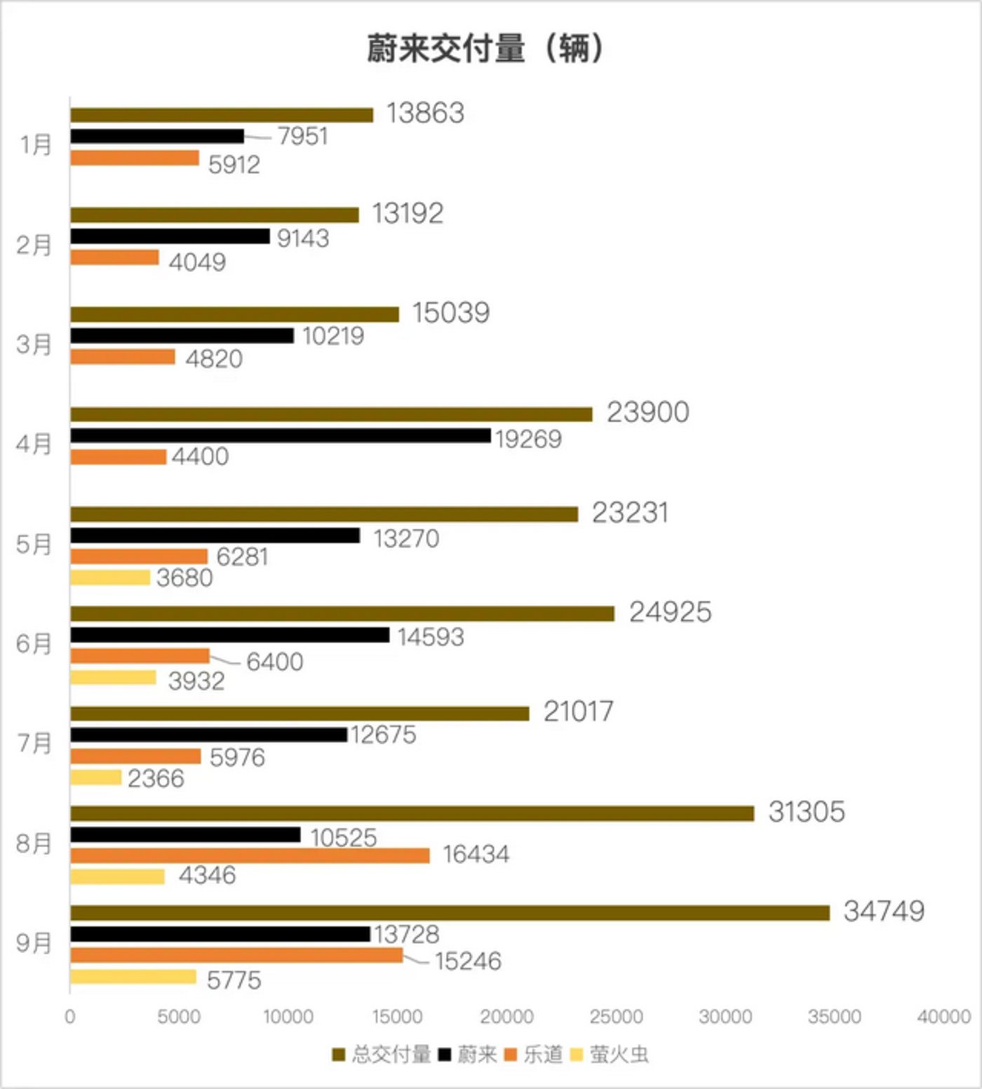 萤火虫保持快速增长:9 月交付 5775 辆,环比增长 32.9%,虽然基数不大,但增长率在三个品牌中最高。