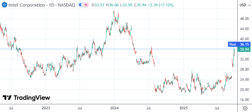 这一进展若能成行,将被视为对英特尔这家陷入困境的芯片制造商的又一次信任投票。受该消息影响,截至收盘,英特尔股价涨超 7%,收于 2024 年 4 月以来的最高水平。