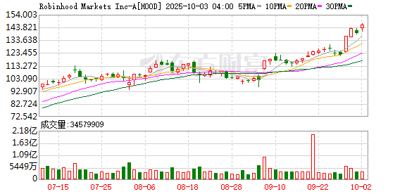 日内,Robinhood 股价收涨 4.71%,再度刷新纪录。年初至今,该股已经累计上涨 291%。与此同时,比特币价格突破 12 万美元/枚,也创下新高。