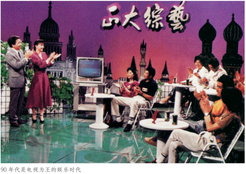 90 年代是电视为王的娱乐时代,电影在 80 年代中期已式微,90 年代更是被电视剧和综艺节目完全压倒,电视成为商业化时代的经典媒介和生产消费的中心,这种局面一直维持到新世纪之初。伴随着 90 年代激进的市场化进程,大众文化充分市场化,加速产业化。新富阶层或所谓 「中产阶级」(「成功人士」)迅速崛起,他们利用市场资源,改造 80 年代大众文化,不但完成了文化的娱乐化消费主义升级 (「娱乐至死」 和粉丝经济),而且建立并巩固了中产阶级的文化趣味和意识形态 (成功神话、赢者通吃),从而利用 「文化工业」,维系了市场社会的生产和再生产。真正的大众,反而丧失了文化表达的主体地位。虽然文化工业的生产与消费必须在表面上迎合大众的欲望才能实现,但那往往只是塑造大众的虚假需求而已。大众 (mass)只不过充当了被动的接受方,资本循环的末端罢了。
