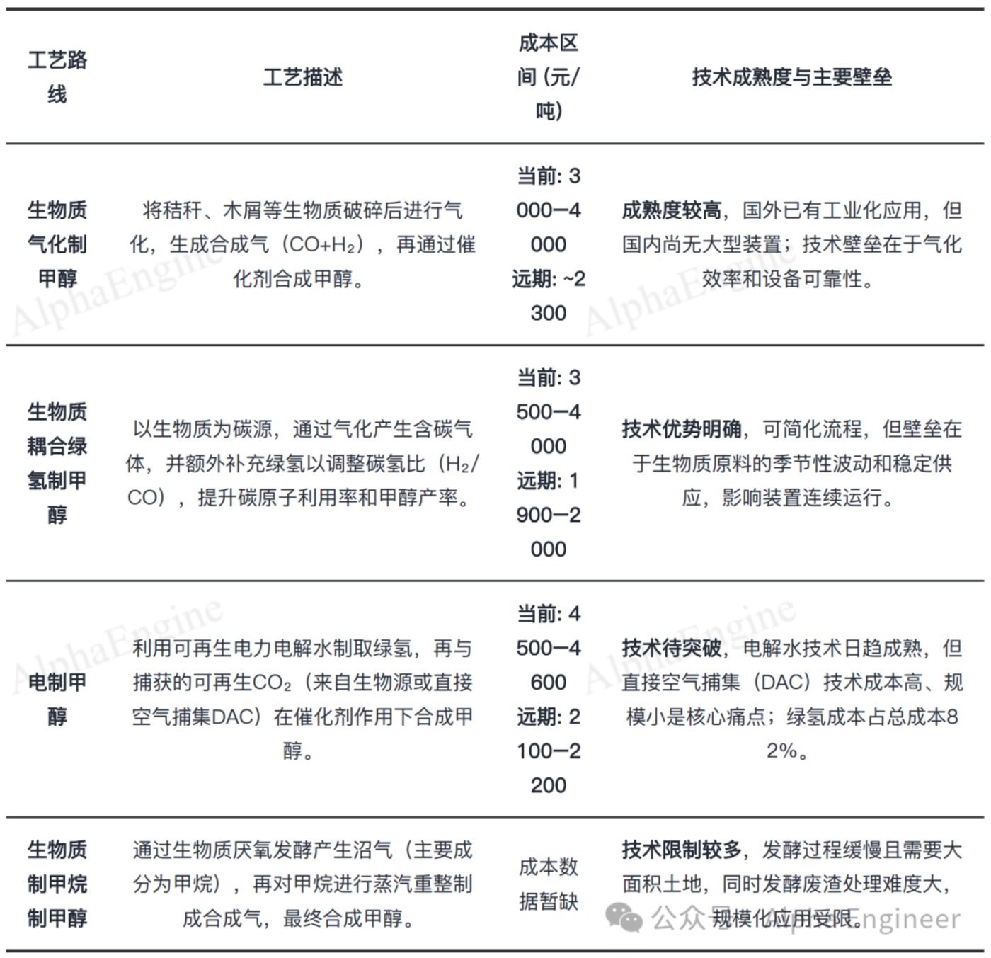 生物质气化路线 (占比 80%-90% ) 为当前主流,成本较低,约 3800 元 / 吨。
