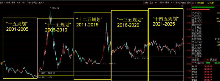 拉长上证指数时间线,我们可以看出,从 2006 年开始,资本市场对五年规划的反馈就越来越明显。