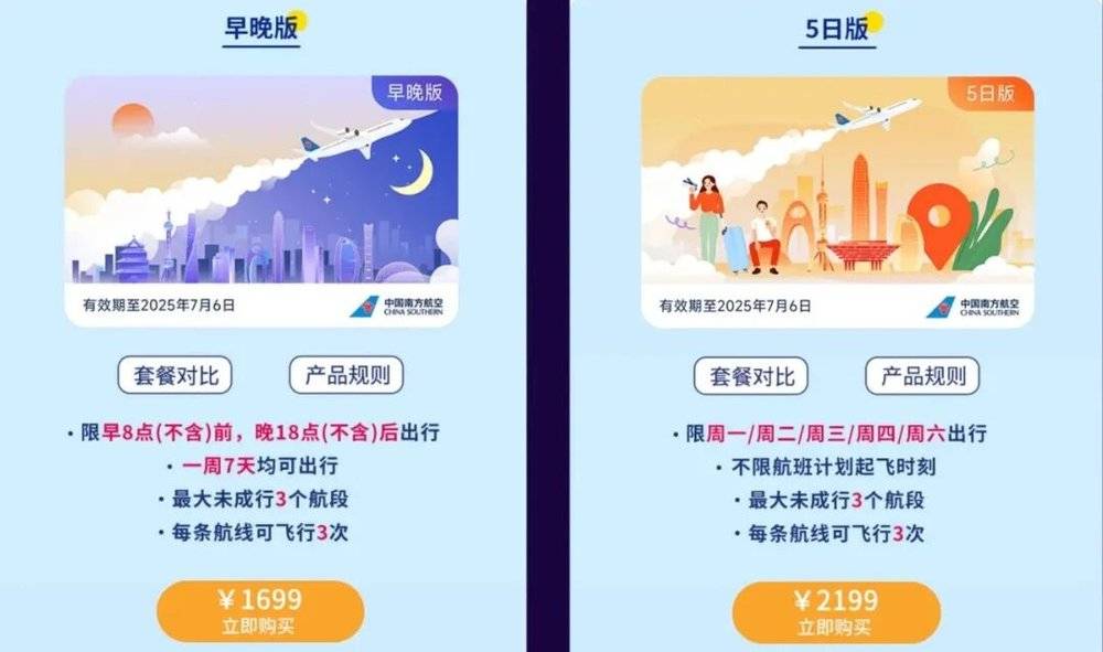 2025 年南方航空不同版本的 「随心飞」 套餐
