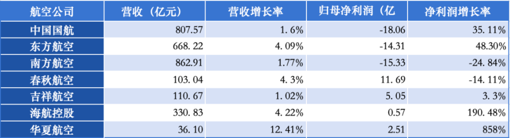 另外三家民营上市航司吉祥航空 (603885.SH)、海航控股 (601221.SH)和华夏航空 (002928.SZ)也都在今年上半年获得盈利。