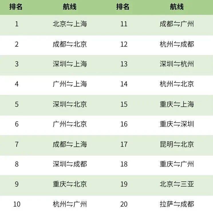 国内最繁忙的 20 条航线/图源:航旅纵横