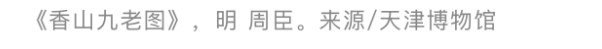 即便到了晚年,白居易仍组织雅集活动与诸位好友相聚。唐武宗会昌五年 (845)春,他邀约六位老者同游山林,饮酒赋诗,史称 「香山雅集」 或 「九老会」。此次雅集堪称中晚唐时期颇具代表性的文人雅集之一。席间七人皆年逾古稀,最长者胡杲已 89 岁,其余依次为吉皎 88 岁、刘真 87 岁、郑据 85 岁、卢真 82 岁、张浑 77 岁,而七十四岁的白居易则是其中最 「年轻」 的文人。他们虽已退离官场,却仍以诗相连、以酒相系,展现出唐代文人终身不辍的交际热情。