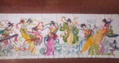 纯手工制作,全新,飞天七仙女敦煌人物系列客厅装饰刺绣挂画大幅手工成品250*90cm