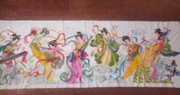 纯手工制作,全新,飞天七仙女敦煌人物系列客厅装饰刺绣挂画大幅 手工成品 250*90cm