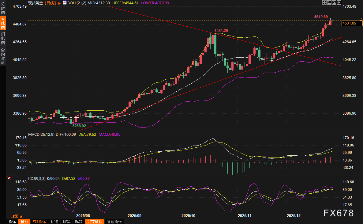 汇通网12月29日讯—— 北京时间12月29日亚市早盘,现货黄金交投于4537美元/盎司附近,