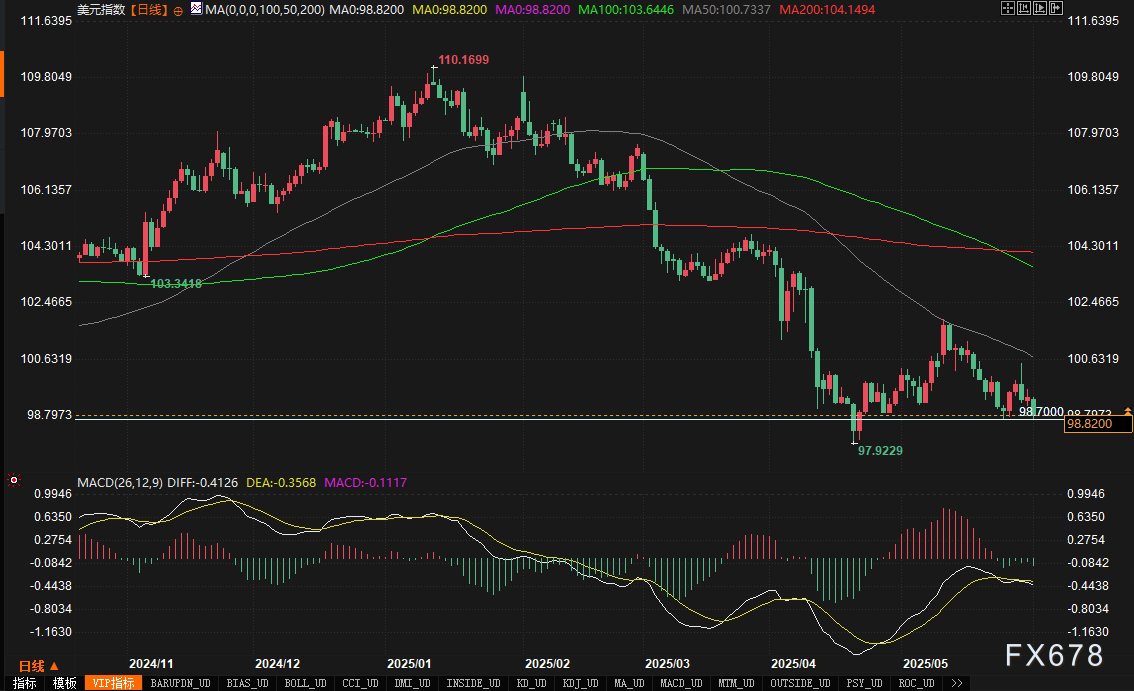 周一(6月2日),欧洲时段美元指数延续弱势,日内下跌0.67%至98.7731,逼近4月22日低点。非美货币普遍走强,欧元兑美元升至1.1417,创4月底以来新高;英镑兑美元同步上涨0.61%至1.3538。加元表现尤为亮眼,兑美元触及近八个月高点1.3675,显示市场对特朗普关税言论的敏感度出现分化。 ![]() 1. 关税言论重燃市场担忧 美国总统特朗普上周五提出将钢铁关税提高至50%的计划导致市场风险偏好受挫。尽管美国财长贝森特释放"通话解决"信号,但实质性进展尚未显现。值得注意的是,加元逆势走强表明,市场对单一商品关税的冲击已部分定价,但对系统性贸易冲突的担忧仍压制美元情绪。 2. S899条款潜在冲击 参议院本周审议的税收法案中,S899条款可能允许美国对实施"歧视性税收"的国家征收20%报复性税,涵盖数字服务税等范畴。若条款通过,明年起或对利息、股息等跨境收入实施预扣税。巴克莱分析指出,此举可能削弱外资持有美债意愿,加剧资本账户压力。目前市场对此风险定价不足,需密切关注周三法案审议进展。 3. 联储政策预期分化 美联储官员沃勒今日重申支持年内降息,当前利率期货显示市场预期53个基点的降息幅度。尽管美元空头仓位已处极端水平,但疲软的ISM制造业数据(今日公布)可能进一步强化宽松预期,压制美元反弹动能。 技术分析 均线系统压制明显。美元指数持续运行于所有关键均线下方(50日100.7327/100日103.6444/200日104.1493),呈现标准空头排列。当前报价98.7731较200日均线偏离达5.1%,显示中长期趋势仍由卖方主导。 MACD指标强化下行信号。DIFF(-0.4146)与DEA(-0.3571)在零轴下方形成"二次开口",且柱状图(-0.1159)绝对值扩大,该形态符合"下跌动能加速"特征,与4月低点97.92的测试需求形成技术共振。 ![]() 若跌破98.70,将验证以下技术逻辑:日线级别下降通道延续,4月22日低点98.15成为下一空头目标。 机构观点与市场情绪 - ING分析师Chris Turner指出:"贸易协议提前终止风险与S899条款形成双重压力,即使美元空头仓位饱和,指数仍可能下探98.70。" - 布朗兄弟哈里曼策略师认为:"保护主义政策加剧滞胀风险,美元长期估值模型面临重构。" - 高盛报告警示:"若关税受阻,政策转向其他增收手段可能对美元造成更深远负面影响。" 趋势展望 未来48小时,市场将聚焦三大变量: 1. ISM制造业数据:若低于预期,可能强化联储降息逻辑,加速美元测试98.65支撑 2. 参议院税改审议:S899条款的修订动向将影响跨境资本流动预期 3. 非农前瞻指标:周二JOLTS职位空缺数据或修正就业市场预期 技术面需警惕两种情境: - 看涨情境:若守住98.65并收复99.66(5月开盘价),或触发空头回补向100.15反弹 - 看跌情境:月线收盘跌破98.65将确认中长期趋势反转,下行空间进一步打开 ![]() |