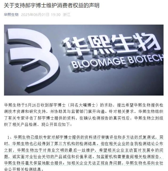 “胶原蛋白和‘重组的’胶原蛋白不是一个概念,‘重组的’胶原蛋白多数情况下依然是多肽,并不能‘重组’为胶原蛋白。华熙生物反对的是这类名称游戏,不是胶原蛋白的科研和产业转化。”6月3日上午,华熙生物方面向《每日经济新闻》记者发来独家回应。 刚刚过去的端午假期中,华熙生物(688363.SH)与巨子生物(02367.HK)两大医美巨头再次发文喊话,而且措辞愈发激烈。 6月2日晚,巨子生物方面回复了《每日经济新闻》记者的采访邮件。对方表示,近日,关于网传我司产品"不含重组胶原蛋白"一事在社会上引发了热议,出现了很多话题。鉴于公司针对上述核心问题将很快公布权威机构的检测报告结论,之后将统一答疑,所以在检测报告结论公布之前,暂不对众多话题逐一回复。 以下为华熙生物方面向《每日经济新闻》记者(以下简称“NBD”)提供的回应全文。这也是华熙生物在6月1日晚间发布微信公众号推文之后,首次对外发声。 ![]() 图片来源:华熙生物微信公众号文章截图 NBD:公司在重组胶原蛋白领域也有投入,如何看待重组胶原蛋白与透明质酸(玻尿酸)在功效、安全性及市场前景方面的差异?后续是否会在重组胶原蛋白领域进行更多的研发投入? 华熙生物:公司更看重的是ECM(细胞外基质)中HA(透明质酸)和胶原蛋白之间的力学共生、信号共生和病理共损关系,多数情况下这两种物质的功效和安全性不能进行简单比较。未来,我们的核心在研究和转化HA和胶原蛋白的交互关系。生命科学大方向不支持HA和胶原蛋白作为两个赛道。 需要说明的是,我们所说的胶原蛋白和“重组的”胶原蛋白不是一个概念,“重组的”胶原蛋白多数情况下依然是多肽,并不能“重组”为胶原蛋白。华熙生物反对的是这类名称游戏,从来不是胶原蛋白的科研和产业转化。 NBD:巨子生物方面认为“这种涉嫌违法的恶意竞争,无疑将破坏消费者对国货品牌好不容易建立起来的信任”,公司对此有何回应?是否担心这些指控会对整个重组胶原蛋白行业,甚至医美行业产生负面影响? 华熙生物:首先,我们认为国货品牌的可信度基础不能建立在概念与学术名称滥用、标准的滥用和“水军”滥用的基础上。否则会出现以国货品牌的名义,行建设扭曲生态之实。例如,有些企业利用中国消费者对胶原蛋白这一概念的热衷,将很多学术上根本不是胶原蛋白的多肽甚至二肽冠以“重组胶原蛋白”的概念,我们应该尊重这样的可信度吗?另外,现在网络平台上,在重组胶原蛋白这个领域,相当长一段时间已经看不到真实消费者的评价,稍有质疑的学术探讨(就)被压制,我们需要这样的平台生态吗? 另外,我们并不认为重组胶原蛋白这个概念可以独立支撑一个行业。可能胶原蛋白是一个独立的研究和转化类别,但重组胶原蛋白这一概念还需要经历时间的考验。 NBD:公司曾表示期待行业企业和社会各界在检测后参与到交叉验证的过程。关于产品检测、技术及方法等方面的细节问题,能否透露一下具体内容和方向?公司希望通过这些行动达到怎样的目的? 华熙生物:我们在接到郝宇博士的求助后组织了内外部专家进行了评估和测试。另外,我们通过官方渠道独立收集过样品,并通过第三方进行过检测,我们发表声明支持郝宇博士是有坚实验证基础的。我们发表这样的声明是期待有关企业能回到产品的质量问题,寻求解决方案。最终,华熙生物坚信监管部门会本着科学检测结果,维护消费者权益和市场基本秩序。 (文章来源:每日经济新闻) |