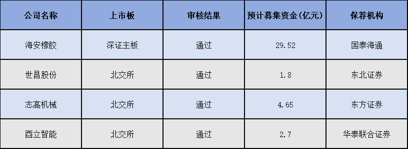 今年5月,A股IPO(首次公开募股)市场有4家公司首发上会,且全部过会,这一上会企业数量较今年4月的9家大幅减少。与此同时,5月份仅有6只新股上市,上市数量在年内也仅高于2月份的1只。 此外,5月份有8家公司IPO终止,数量较4月份有所抬头,其中有2家公司此前已首发过会。在IPO终止潮持续的同时,5月份A股IPO市场新受理了16家公司,数量居年内月度新高。 在赴境外上市方面,截至2025年5月30日,共有158家公司在进行境外发行证券备案中,其中拟赴港上市的超七成。赴港上市热潮持续,5月份有41家公司递表港交所,而且有至少7家A股上市公司首次公告披露拟赴港IPO。而在新股发行市场,随着宁德时代登陆港交所,5月港股市场首次招股募资额创下自2021年4月以来的月度新高。 A股4家IPO公司过会,新股上市数量仅高于2月份 5月份,A股IPO市场迎来4家公司首发上会并全部过会,包括来自深证主板的海安橡胶,以及来自北交所的世昌股份、志高机械和酉立智能,这一首发上会企业数量较上月的9家有所减少。 ![]() 上述4家过会企业中,海安橡胶主要从事巨型全钢工程机械子午线轮胎的研发、生产与销售,以及矿用轮胎的运营管理业务。 深交所上市委在现场主要问询了两个问题,一是要求海安橡胶说明预计2025年~2027年营业收入复合增长率为20%的合理性及可持续性,报告期后业绩是否存在下滑风险。根据招股书,2022年至2024年各年度,海安橡胶营业收入分别为15.08亿元、22.51亿元和23亿元,其扣非后归母净利润分别为3.19亿元、6.39亿元和6.41亿元。 与此同时,深交所上市委还要求海安橡胶结合新增产能情况、消化措施及可行性,说明募投项目规划的合理性。招股书显示,海安橡胶的产能利用率,从2022年的99.05%和2023年的100.7%,下降至2024年的91.06%。 上述4家过会IPO公司中,在5月16日过会的酉立智能已在5月23日提交注册,其余三家公司均于5月30日过会,截至发稿时间,尚未提交注册。 今年5月份,A股市场还有6只新股上市,上市数量在年内仅高于2月份的1只。虽然新股数有所下降,但新股上市首日表现不错,其中有4只新股在上市首日涨幅超100%,最高的天工股份涨幅高达411.93%。 8家公司终止IPO,IPO受理数创年内月度新高 5月份,A股市场有8家公司终止IPO项目,分别为拟上市沪深主板市场的好博窗控、青岛青禾和烨隆股份,拟上市创业板的佳源科技和朗泰通科技,以及拟上市北交所的赤诚生物、东昂科技和控汇股份,这一数量较4月份的5家有所增加。 ![]() 记者注意到,上述8家已终止IPO公司中,除赤诚生物和东昂科技外,其余6家均于2024年之前获得受理,尤其是佳源科技,其早在2022年即已获得IPO受理。 值得注意的是,烨隆股份和佳源科技此前已首发过会,过会时间分别为2023年9月25日和2023年7月7日,两家公司在过会后便一直未有实质性进展。 交易所官网显示,目前除在今年5月过会的海安橡胶外,深交所还有3家已过会IPO公司尚未提交注册,全部来自创业板,分别为容汇锂业、博华科技和广东建科。其中,广东建科于2021年获得IPO受理,其余2家公司均于2022年获得IPO受理,3家公司均于2023年首发过会,此后便无实质进展。上交所还有大明电子1家公司在首发过会后尚未提交注册,其于2023年获得IPO受理,在去年2月首发过会。 在IPO项目终止潮持续的情况下,A股IPO市场在5月份新受理了16家公司,其中北交所新受理10家,上证主板和创业板各受理2家,深证主板和科创板分别受理1家。值得一提的是,5月份IPO受理数量也创下了年内各月度的新高,而且也是创业板今年以来首次受理企业IPO申请。 41家公司递表港交所,158家公司境外发行证券备案中 5月份,境内企业赴境外上市热度仍旧。 中国证监会官网披露的《境内企业境外发行证券和上市备案情况表(首次公开发行及全流通)(截至2025年5月30日)》显示,截至2025年5月30日,共有158家企业在进行境外发行证券备案中,其中有117家拟赴港交所上市,39家拟赴纳斯达克交易所上市,2家拟赴台湾证券交易所上市。 5月份,也有三花智控、圣贝拉有限公司、安井食品、佰泽医疗集团、峰岹科技5家公司获得证监会境外上市备案批文。 在港股市场,5月份有41家公司递表。值得一提的是,41家递表公司中,包括了杰华特、大族数控、紫光股份、牧原股份、三一重工5家A股上市公司,这也延续了A股上市公司赴港上市的热潮。 据《每日经济新闻》记者不完全统计,今年5月份,共有7家A股上市公司首次公告披露拟赴港IPO,这些公司包括合合信息、山推股份、韦尔股份、龙旗科技、美格智能、军信股份、沃尔核材,还有紫金矿业公告披露拟分拆子公司紫金黄金国际赴港上市。 数据显示,5月份港股市场有10家公司上市,上市数量创下年内月度新高,其中包括宁德时代和恒瑞医药两家巨头企业,这也使得5月港交所首次招股募资额达558.01亿港元,创下了自2021年4月以来的月度最高值,并进一步促使港交所年内IPO募资额时隔数年再次回到全球榜首。 与此同时,5月港股市场10只新股中,有3只在上市首日破发,其余7只录得上涨,新股首日破发率为30%。 (文章来源:每日经济新闻) |