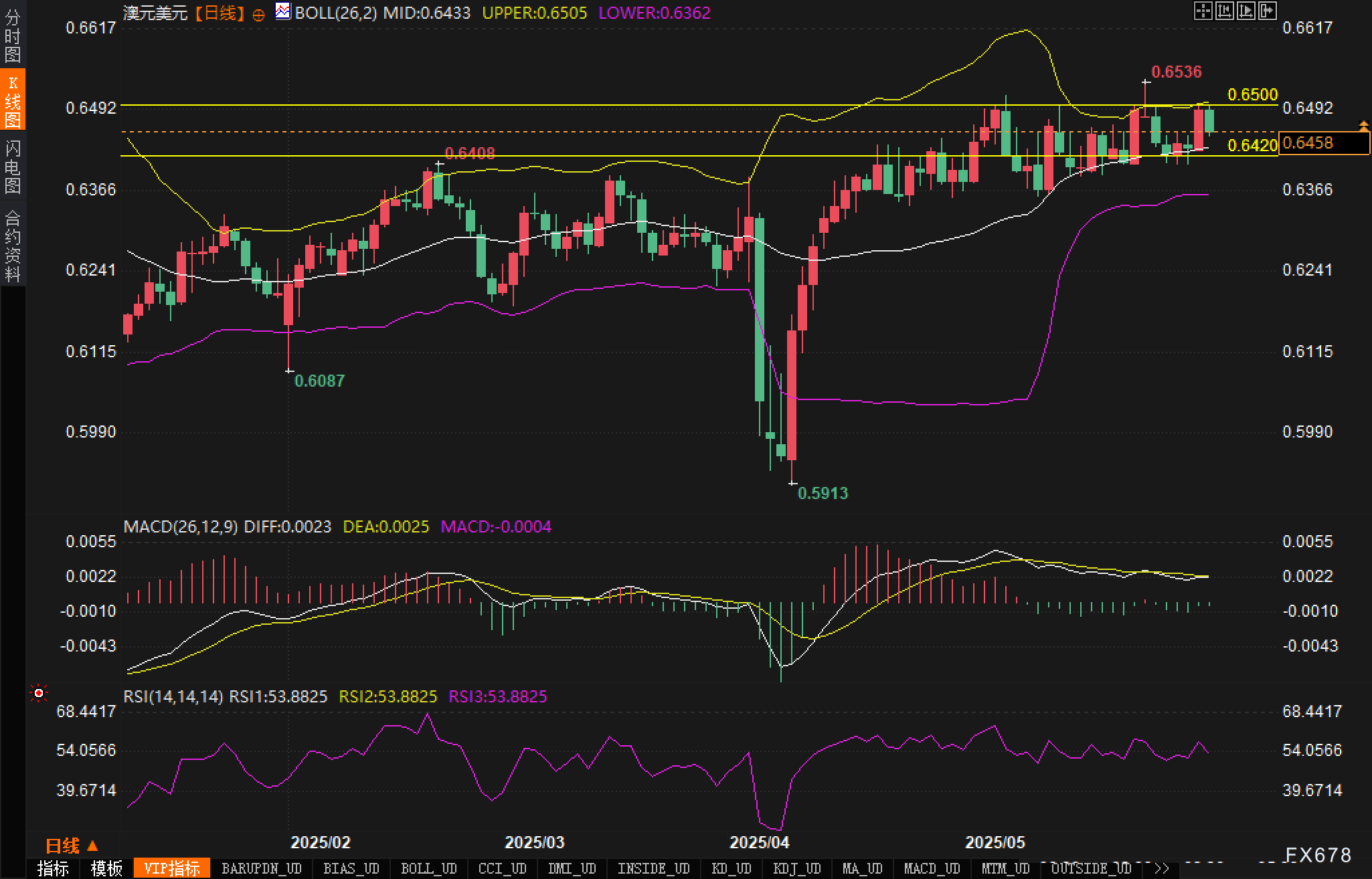 周二(6月3日),澳元兑美元汇价在欧洲时段显著回落,当前交投于0.6450区域附近。此前一日曾短暂接近0.6500心理阻力,但未能站稳,并遭遇空头反扑,日内跌幅逐步扩大。此轮下行压力主要受到澳洲联储释放的鸽派信号拖累,同时美元阶段性企稳也对汇价构成压制。 ![]() 最新公布的澳洲联储会议纪要显示,尽管曾短暂讨论激进的50基点降息选项,但最终决定持续政策观察,暗示决策层对于经济下行风险的担忧正在加深。澳洲联储副主席Sarah Hunter进一步表示,外部不确定性上升将抑制企业投资与就业扩张,为澳洲经济前景蒙上阴影。 此外,美国总统最新贸易政策言论引发市场警觉,避险情绪上升,加剧资金从高风险资产转出。 美元方面,尽管中期内美联储降息预期仍未动摇,但阶段性回调后出现技术性反弹,在缺乏新一轮利空刺激的背景下小幅走强,为澳元构成反向压力。 技术面: 从日线图观察,澳元兑美元汇价已在0.6420至0.6500的区间震荡逾三周,形成明显“箱体整理”结构。当前价格再次自上轨0.6500附近回落,短线显示“假突破”迹象,构成典型的“诱多”结构。上方阻力位维持在0.6500和0.6536两个点位,下方支撑依旧关注0.6420与0.64区域的承接力度,若失守,或将下测0.6362的布林下轨支撑。 ![]() 市场情绪观察 当前市场情绪整体偏谨慎。澳洲本地数据前景不佳,而海外主要风险事件未见明朗,导致多头缺乏上攻动能。尽管部分交易员试图捕捉0.6500突破机会,但技术性抛压随即出现,显示上方压力犹在。 美元方面,由于JOLTS职位空缺数据即将公布,以及后续非农就业报告临近,部分交易员倾向于在数据出炉前降低美元空头敞口,间接打压澳元走势。 整体来看,当前市场呈现“情绪收缩+方向不明”的典型震荡市特征,追涨杀跌策略风险较高,交易员关注情绪转折点的信号确认。 后市展望 短期展望:若汇价持续受制于0.6500上方阻力,空头或将主导短期走势,回测0.6420乃至更低支撑的可能性上升。但在美联储实际降息路径未明朗前,美元难以展开持续性升势,汇价大概率仍维持高位震荡结构。 中期展望:若后续澳洲GDP数据进一步转弱,而美联储释出更加鸽派信号,汇价或将展开新一轮方向选择。突破0.6500并站稳将打开上行空间,反之,一旦失守0.6420,将构成阶段性头部形态,回调空间将加深。 ![]() |