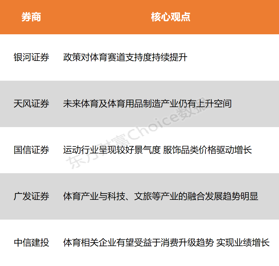 6月3日,两市股指盘中震荡拉升,沪指、创业板指等走高,北证50指数涨超1%,场内近3400股飘红。 行业板块多数收涨,珠宝首饰、美容护理、贵金属、家用轻工、化学制药、游戏、生物制品、多元金融板块涨幅居前,汽车整车、钢铁行业跌幅居前。 近日,江苏流量爆炸式增长,抖音话题#江苏城市联赛#播放量破亿次,素人短视频占比超70%,虎扑“江苏联”频道单日访问量破百万。此外,门票销售也异常火爆,10元门票炒至500元。银河证券表示,政策对体育赛道支持度持续提升,共同推动体育产业规模增长;天风证券指出,政策利好体育产业持续发展,未来体育及体育用品制造产业仍有上升空间;广发证券认为,体育产业与科技、文旅等产业的融合发展趋势明显,将为体育相关企业带来新的增长点和发展机遇。 ![]() 银河证券:政策对体育赛道支持度持续提升 自2019年国务院发布《体育强国建设纲要》以来,政策对体育赛道支持度持续提升,叠加体育消费主力主要以青年群体为主,共同推动体育产业规模由2019年从2.9万亿元增至3.7万亿元,CAGR5.7%。其中,体育竞赛表演活动增长强劲,总产值由2019年的309亿元增长至2024年的752亿元,CAGR23%。从供给端看,中共中央办公厅、国务院办公厅印发的《提振消费专项行动方案》中指出将通过优化体育赛事活动审批流程,简化赛事审批流程,提高赛事筹备效率,支持各地增加优质运动项目和特色体育赛事供给。 天风证券:未来体育及体育用品制造产业仍有上升空间 政策利好体育产业持续发展,未来体育及体育用品制造产业仍有上升空间。《体育强国建设纲要》、“十四五” 规划、《全民健身计划(2021 - 2025 年)》等发展规划对体育产业多个方面给予支持。同时人均可支配收入水平逐年提升,全民健身意识逐渐提高,体育用品制造行业处于体育产业上游,需求与发展前景将随着体育场馆服务、体育培训与教育等项目的增长而上升。 国信证券:运动行业呈现较好景气度服饰品类价格驱动增长 运动行业在 2024 年呈现较好景气度,销售额双位数增长伴随单位数价格提升,运动 + 户外行业在服饰大盘比例提升到约 1/4。服饰品类价格驱动增长,鞋类销量增速表现好,跑鞋放量增长明显。 广发证券:体育产业与科技、文旅等产业的融合发展趋势明显 体育产业与科技、文旅等产业的融合发展趋势明显,将为体育相关企业带来新的增长点和发展机遇。例如,体育科技领域的创新可提升运动体验和赛事运营效率,体育文旅融合可打造特色旅游产品和消费场景。 中信建投:体育相关企业有望受益于消费升级趋势 实现业绩增长 随着居民收入水平提高和健康意识增强,体育消费市场不断扩大,体育相关企业有望受益于消费升级趋势,实现业绩增长。建议关注在体育用品制造、赛事运营、体育服务等领域具有竞争优势的企业。 (本文不构成任何投资建议,投资者据此操作,一切后果自负。市场有风险,投资需谨慎。) (文章来源:东方财富研究中心) |