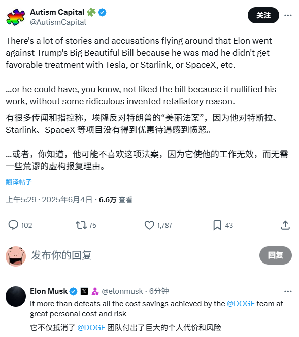 6月4日,有传闻称马斯克反对特朗普的税改法案是因为马斯克对特斯拉、Starlink、SpaceX等项目没有得到优惠待遇而愤怒。马斯克随后转帖称,特朗普的税改法案“不止是让政府效率部所有的减支努力落空”。 马斯克 ...