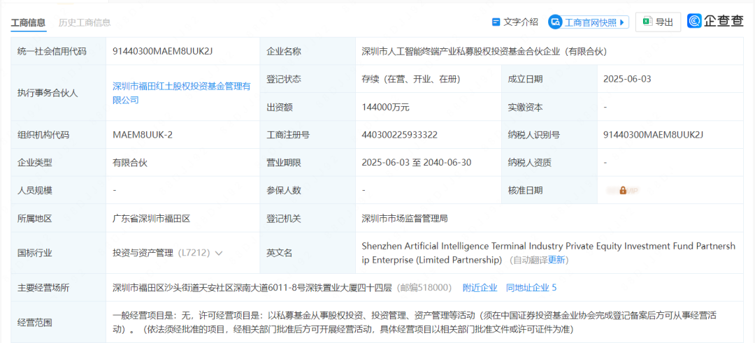 IPO递表在即,荣耀正积极地尝试多维度构建AI生态。 企查查App显示,近日,深圳市人工智能终端产业私募股权投资基金合伙企业(有限合伙)成立,出资额为14.4亿元,经营范围包含以私募基金从事股权投资、投资管 ...