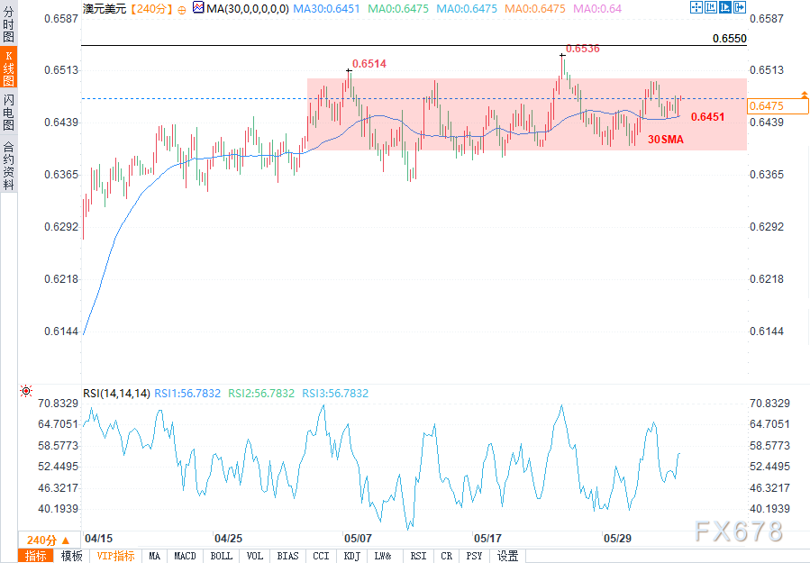 周三 6月4日 欧盘时段 分时图上 澳元 美元价格围绕均线 0 6463 波动 有明显的上下震荡 短期多空博弈较激烈 价格在一定区间内反复争夺 当前澳元相对美元偏强 但未进入超买区域 悲观的数据和温和的澳洲联储会议纪要后 ...