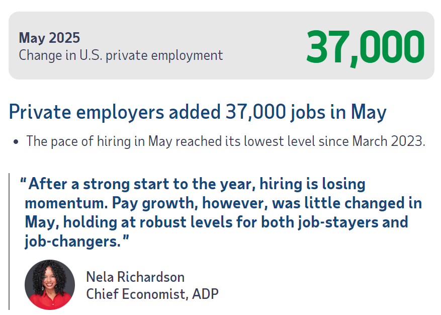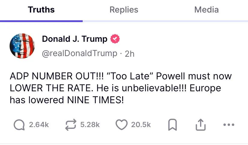 当地时间6月4日,由于“小非农”ADP就业数据和ISM服务业数据双双表现欠佳,美股市场承压,美元指数走低。美债、黄金则盘中走强,截至发稿,现货黄金价格重返3380美元/盎司上方,日内涨幅扩大至0.9%。 在美国5月ADP就业数据发布后,美国总统特朗普再度发帖喊话美联储主席鲍威尔。特朗普写道:“ADP就业报告出来了,‘太迟先生’鲍威尔现在必须降息。这太难以置信了!欧洲已经降息了九次!” 部分经济学家担心,关税政策可能会在未来几个月导致美国就业市场明显疲软。当前投资者正密切等待本周五美国劳工统计局(BLS)正式发布的5月非农就业报告。 “小非农”和ISM服务业数据双双欠佳 美股盘前,素有“小非农”之称的美国ADP数据发布。报告显示,美国私营部门的就业增长在5月份放缓至近乎停滞,创下两年多来的最低水平,劳动力市场出现疲软迹象。 具体来看,美国5月ADP就业人数3.7万人,为2023年3月以来最小增幅,市场预期为11万人,前值为6.2万人。 ![]() ADP首席经济学家Nela Richardson称:“在经历了今年的强劲开局后,招聘势头正在减弱。”薪资水平方面,Richardson表示,留任员工的年薪增长率为4.5%,跳槽员工的年薪增长率为7%,两者与4月份相比变化不大,但仍处于“强劲”水平。 此外,美股开盘后不久,美国供应管理学会(ISM)发布的数据显示,美国5月份服务业PMI指数降至49.9,不及预期的52,4月前值为51.6。这也是ISM服务业PMI指数近一年来首次陷入萎缩,一般而言50为荣枯分水岭。 美股承压 美债、黄金短线走高 在“小非农”和ISM服务业数据双双表现不佳后,美股、美元小幅走低,美债、黄金盘中走强。 美股盘前,受“小非农”数据不及预期的影响,美股三大指数期货一度集体转跌。开盘后,美股三大指数一度走高,但由于ISM服务业PMI指数不及预期,标普500指数涨幅收窄至0.15%,纳斯达克指数涨幅收窄至0.16%,道指微涨0.07%。此外,美元指数短线走低。 ![]() ![]() 美国10年期国债收益率跌幅迅速扩大,刷新日低至4.375%;两年期美国国债收益率跌幅同样扩大,刷新日低至3.88%附近。 ![]() 现货黄金价格则短线快速拉升,重返3380美元/盎司上方,日内涨幅扩大至0.9%。 特朗普再次喊话鲍威尔:现在必须降息 在美国5月ADP就业数据发布后,特朗普再度发帖喊话鲍威尔。特朗普写道:“ADP就业报告出来了,‘太迟先生’鲍威尔现在必须降息。这太难以置信了!欧洲已经降息了九次!” ![]() 此外,加拿大央行当地时间6月4日宣布,决定维持2.75%的政策利率不变,符合市场预期。加拿大央行表示,鉴于美国关税的不确定性仍然很高,加拿大经济有所疲软但并未大幅减弱,以及近期通胀数据出人意料地走强,加拿大银行管理委员会决定维持政策利率不变。 (文章来源:上海证券报) |