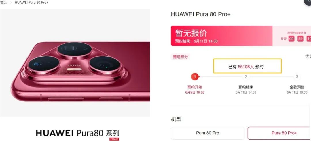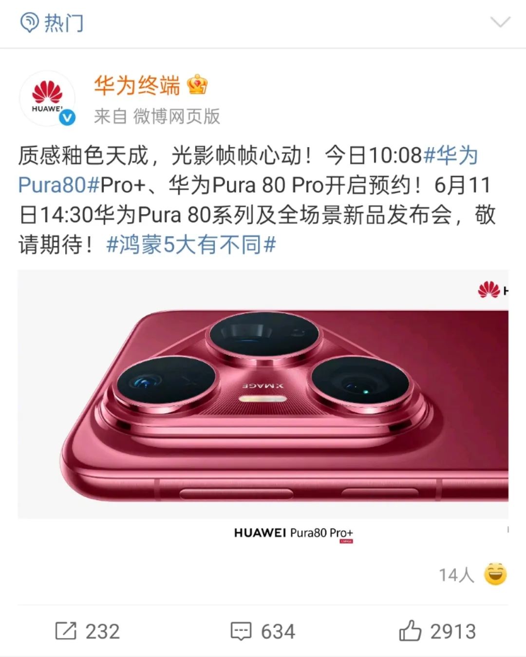 继发布会正式定档6月11日后,华为影像旗舰Pura 80今日开启预约。 预约购买人数已超5.5万 搭载原生鸿蒙的华为Pura 80系列手机,依旧“未发先约”。6月5日,华为终端宣布华为Pura 80 Pro+、Pro将于今日10:08 ...