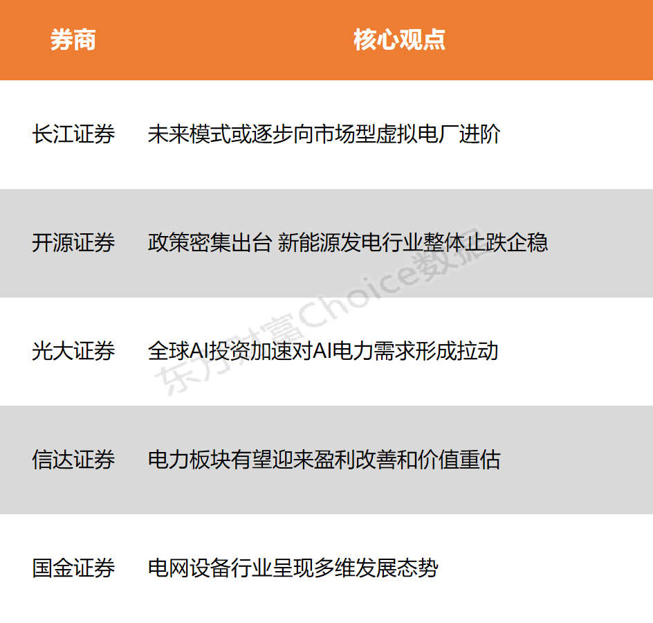 6月5日,两市股指早盘窄幅震荡,午后发力拉升,创业板指、科创50指数涨超1%,全A成交额有所放大。 行业板块涨多跌少,计算机设备、消费电子、电子元件、软件开发、互联网服务、通信设备、半导体、通信服务等TMT板块涨幅居前,珠宝首饰、美容护理、食品饮料、化学制药板块跌幅居前。 国家能源局日前发布《关于组织开展新型电力系统建设第一批试点工作的通知》,其中提出,先期围绕构网型技术、系统友好型新能源电站、智能微电网、算力与电力协同、虚拟电厂、大规模高比例新能源外送、新一代煤电等七个方向开展试点工作。长江证券表示,随着电力交易市场化提速,未来模式或逐步向市场型虚拟电厂进阶;开源证券指出,目前市场对新能源发电板块电量、电价预期或已充分定价,绿证、补贴等政策落地有望带来正向边际变化;光大证券认为,在AI数据中心快速发展的趋势下,国内领先且具备较强研发实力的服务器电源厂商将迎来发展机遇。 ![]() 长江证券:未来模式或逐步向市场型虚拟电厂进阶 展望未来,一方面,2024年以来政策频出、各地加速建设虚拟电厂;另一方面,电力市场主体不断丰富、价值机制日趋完善,随着电力交易市场化提速,未来模式或逐步向市场型虚拟电厂进阶。 开源证券:政策密集出台 新能源发电行业整体止跌企稳 2024年国家多部门密集出台政策,为新能源发电运营商营造稳定可预测的市场环境,行业整体止跌企稳。2025年全国能源工作会议进一步推动新能源参与电力市场。目前市场对新能源发电板块电量、电价预期或已充分定价,绿证、补贴等政策落地有望带来正向边际变化。 光大证券:全球AI投资加速对AI电力需求形成拉动 AI快速发展推动其电力需求大幅上升,DeepSeek的出现进一步增强了除美国以外其他国家的AI投资信心,全球AI投资加速亦将对AI电力需求形成拉动。在AI数据中心快速发展的趋势下,国内领先且具备较强研发实力的服务器电源厂商将迎来发展机遇。 信达证券:电力板块有望迎来盈利改善和价值重估 国内历经多轮电力供需矛盾紧张之后,电力板块有望迎来盈利改善和价值重估。在电力供需矛盾紧张的态势下,煤电顶峰价值凸显;电力市场化改革的持续推进下,电价趋势有望稳中小幅上涨,电力现货市场和辅助服务市场机制有望持续推广,容量电价机制正式出台,明确煤电基石地位。双碳目标下的新型电力系统建设或将持续依赖系统调节手段的丰富和投入。此外,伴随着发改委加大电煤长协保供力度,电煤长协实际履约率有望边际上升,煤电企业的成本端较为可控。展望未来,电力运营商的业绩有望大幅改善。 国金证券:电网设备行业呈现多维发展态势 电网设备行业主网建设加速推进,国网输变电设备第二批中标金额达176.4亿元,同比增长13%,创单批次新高,前两批累计同比增长17%。配网方面,国网发布4个批次配电变压器、5个批次融合成套产品联采招标,预计金额超65亿元。政策层面,发改委、能源局印发《电力辅助服务市场基本规则》,标志着辅助服务市场化改革进入体系化实施阶段,将推动调频、备用等服务品种的市场化运作。行业整体呈现"主网提速、配网升级、市场化改革深化"的多维发展态势。 (本文不构成任何投资建议,投资者据此操作,一切后果自负。市场有风险,投资需谨慎。) (文章来源:东方财富研究中心) |
