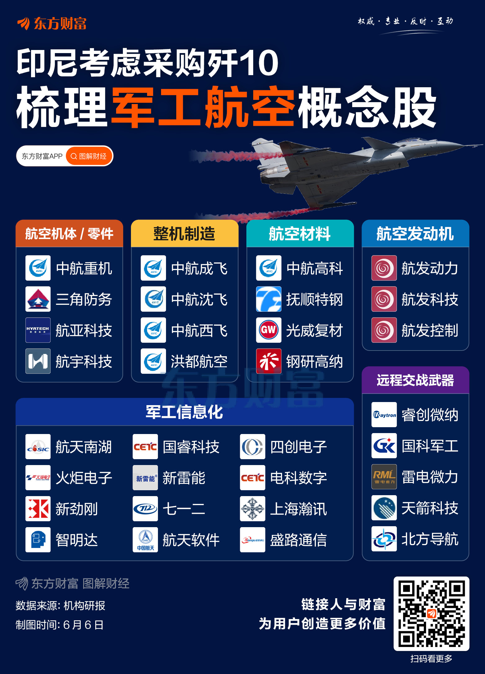 印尼考虑采购歼10的消息,令军工航空板块再度获得关注。综合券商机构研报看,随着军贸迈入净顺差阶段,整机制造、航空发动机、军工信息化、远程交战武器等多个军工航空细分领域有望获关注。 央视新闻6月5日报 ...