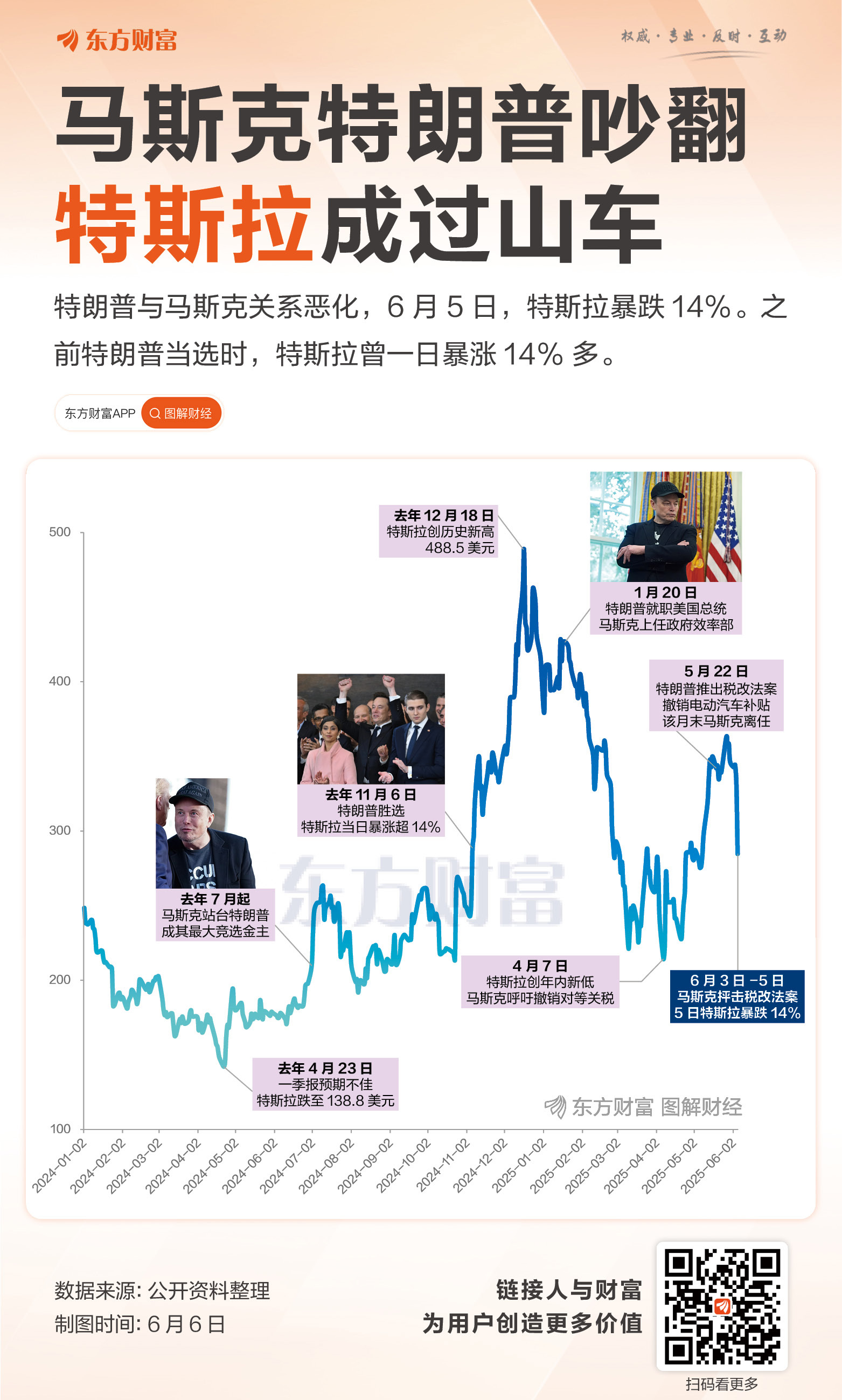![]() 6月5日,特斯拉股价暴跌14.26%,报收于284.7美元/股。总市值从上一日的1.07万亿美元跌至9170亿美元,一夜蒸发超1500亿美元(约合人民币1.08万亿元)。今年以来,特斯拉股价已大跌30%。 消息方面,马斯克与特朗普矛盾公开化,当前已发展至隔空骂战。引发双方“反目成仇”的导火索,是5月22日美国国会众议院通过了特朗普政府提出的一项大规模税收与支出法案,特朗普政府将该法案描述为“大而美”。 在“大而美”法案中,特朗普寻求将其首个任期(2017年)通过的个税与遗产税减免政策永久化,同时落实2024年竞选期间做出的承诺——免除小费收入、加班费及部分汽车贷款利息的征税。为部分弥补税收损失,特朗普政府提议废除或逐步取消拜登在任内通过的可再生能源税收抵免政策,从而将整体减税成本控制在约3.8万亿美元。 “大而美”法案还包括将美国债务上限提高4万亿美元,这也是本次马斯克与特朗普持续骂战的焦点。最新数据显示,美国的债务总额已超过36万亿美元。美国财长贝森特曾在上个月发出预警,美国财政部或将在8月底前耗尽资金,致使美国触及债务上限。 除了债务上限外,“大而美”法案中提到,将取消拜登时期推出的电动汽车“强制令”。“强制令”允许购买新电动汽车的消费者最多可获得7500美元的税收抵免,如果该法案成为法律,补贴政策取消将对特斯拉的销量形成直接冲击。 连日以来,马斯克持续批评“大而美”法案会大幅增加财政赤字,并呼吁选民给所在选区的议员打电话,阻止法案在国会通关。马斯克6月3日发文表示,国会正在让美国破产……这将使本就巨大的预算赤字大幅增加至2.5万亿美元,并给美国公民带来难以承受的债务负担。 6月5日,美国总统特朗普谈及马斯克,称马斯克了解“宏大而美丽”法案的内部运作,且对此毫无异议,直到发现要撤销电动汽车“强制令”才意识到问题。 在特朗普发表对马斯克的评价后,马斯克迅速在社交媒体上回应并反驳称,“大错特错,这项法案一次也没有给我看过,而且是在深夜迅速通过的!” 特朗普随后在其社交媒体发文称,他要求马斯克离开,撤销了马斯克强推的电动汽车“强制令”,结果“马斯克疯了”。几个月前马斯克就知道他会撤销电动汽车“强制令”。此外,他还对马斯克发出威胁,“在数十亿美元的预算中,最简单的省钱方法就是终止埃隆·马斯克的政府补贴和合同”。 马斯克当天还在自己的社交媒体主页置顶了一项调查——“美国是否应创建一个真正代表80%中间派的新政党?”马斯克直指:“如果没有我,特朗普就会输掉大选。”特朗普则回击说,没有马斯克他照样可以赢得选举。 (文章来源:东方财富研究中心) |