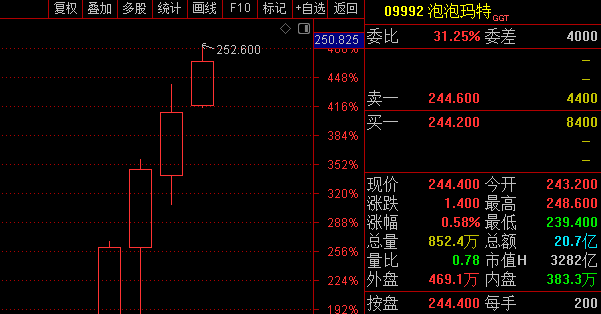 “现在去追泡泡玛特?就如同2021年初去追2400元高位的茅台。这轮泡泡玛特的加速飙涨,本质还是与当年炒茅台一样,跟风炒作意味更浓。” 时代变了?一场新消费崛起和白酒价值的对比讨论一时间占据各大社交平台,茅台和“塑料茅台”似乎也要展开一场决战,是飞天茅台的酒香还是火出国的LABUBU“香”。多位同时持股贵州茅台和泡泡玛特的私募大佬给出自己的看法,他们的投资心路历程或许能透视整个消费投资的大变革。 理性看涨:泡泡玛特已透支未来业绩 “去年泡泡玛特赚的钱,正好弥补了在茅台身上亏的钱,我们整个投资团队都想不到泡泡玛特会那么猛。”在春节后的一次饭局上,正巧来成都调研的私募大佬略带欣喜地聊到了茅台与泡泡玛特的投资。 茅台,是他私募产品成立以来一直坚定持有的品种,而泡泡玛特则是上市当日就被其敏锐捕捉。但众所周知,泡泡玛特上市后前三年的表现并不佳,该私募也坦言上市就买入泡泡玛特给整个团队带来巨大的投资压力。“上市前,我们就调研过泡泡玛特。团队都认可他们的盲盒和IP(具有商业价值的原创内容或品牌)运营逻辑。上市后股价一直跌,我们刚开始就一直补,补到最后都怀疑最初的价值判断,再后来都不敢再补。去年涨起来,也不敢再加仓,现在就持有着继续看吧。” 短短四个月后,当《每日经济新闻·将进酒》记者再次和这位私募聊起这个话题时,泡泡玛特股价又涨了近150%,市值已突破3000亿港元。 该私募表示,泡泡玛特被爆炒,有两个超预期因素:一个是海外市场大获成功,第二个就是LABUBU这个现象级IP的意外诞生。 在王宁《因为独特》那本书里就谈到了海外市场:2023年10亿元,2024年的预期是同比100%增长,没想到却做了50亿元。 根据泡泡玛特2024年年报,其中国港澳台地区及海外营收达到50.7亿元,同比增长375.2%,营收占比从17%提升至39%。其中,东南亚营收24亿元,同比增加619%;北美营收7.2亿元,同比增加556.9%,成为继东南亚外增速第二的市场;东亚及中国港澳台地区营收13.9亿元,同比增加184.6%,稳健增长。 IP方面,毛绒推出第二年即成为年度爆品。截至去年底,泡泡玛特共有13个IP营收破亿元,其中四大IP营收破十亿元,如作为新晋头部IP的THEMONSTERS全球迅速走红,营收达30.4亿元,同比增加726.6%。 不过,该私募告诉《每日经济新闻·将进酒》记者,“现在LABUBU很火有溢价,不过我个人感觉太火,不是常态,会把本来不是LABUBU的受众、黄牛等也都拉过来,导致业绩透支。就像排队的喜茶和奈雪一样,这种不能看成常态化,而是线性外推业绩。茅台也刚好推出的‘走进系列’也是秒光,这一点和泡泡玛特确实很像。” “个人感觉如果现在这个时刻,卖出茅台去换泡泡玛特,多半是不太成熟的投资人。这时候去买泡泡玛特,就像2021年去买茅台。”这位私募的观点是,如今泡泡玛特可能透支了未来3年业绩。目前的估值,如果不成长的话,得要200亿利润来支撑。 ![]() ![]() 投资逻辑:基金经理“偏爱”泡泡玛特也有无奈 的确,短短一年半时间,泡泡玛特股价出现了超10倍的飙涨,其股价从2023年底的19.05港元/股最高涨至252.6港元/股。期间,基金持股数量也是一路激增。 根据WIND数据统计,截至2024年3月31日,持有泡泡玛特的基金数量为36只,基金持股总数达到5155.98万股;而到年底,持有泡泡玛特基金数量增加到116只,基金持股总数达到5769.87万股。 到2025年3月31日,短短三个月时间,持有泡泡玛特的基金数量迅猛增至207只,环比增长幅度达到78.45%,基金持股总数也增至6874.74万股,环比增长19.15%。 从一季度末基金持股数量来看,目前,景顺长城品质长青A、广发价值核心A、南方兴润价值一年持有A、富国沪港深业绩驱动A以及富国消费精选30A持有泡泡玛特股份超过200万股。其中,景顺长城品质长青A持股322.26万股居首。 一位职业投资人向《每日经济新闻·将进酒》记者分析,“近一年买入泡泡玛特的基金,特别是消费类基金呈现两个特点,一是新生代的基金经理,不局限于传统的消费组合流(比如持仓一堆白酒),主要在发力成长性新消费。他们不拘泥当下的业绩和估值匹配,更关注Z世代在玩的东西,如潮玩、宠物、卡牌、珠宝等。二是一些老消费资金,最开始不买新消费,但新锐基金经理买入新消费净值拉升太快,老消费基金经理也不得不适当调仓,买入泡泡玛特这些新消费股”。 例如景顺长城基金经理农冰立,其担任投资经理年限不到7年。在他担任景顺长城品质长青A基金经理后,于2023年末开始买入泡泡玛特,并于2024年初和2025年初两次大幅增仓泡泡玛特,目前持有泡泡玛特股份已达322.26万股。 ![]() 而掌管景顺长城港股通全球竞争力A的基金经理,其担任基金经理年限已超9年,于今年一季度才开始买入泡泡玛特,净买入股份达到40.82万股。 新消费VS老消费:一场社会文化属性的博弈 目前,市场上开始普遍讨论新老消费的价值属性。有业内人士认为,投资人过去从白酒、家电等传统消费转向黄金、潮玩等新消费,背后是消费投资价值的分化。从品牌消费到品质消费,再到服务消费,加之消费渠道作用权重不断下降,消费者心中的天平更偏向产品品质之外的功能价值、情绪价值和资本价值。 对此,上述私募经理也表达了自己的看法,其称“茅台和泡泡玛特本质上两者的投资逻辑应该都是一样的。泡泡玛特是‘年轻人的茅台’,或者茅台是‘老年人的泡泡玛特’,都是精神属性