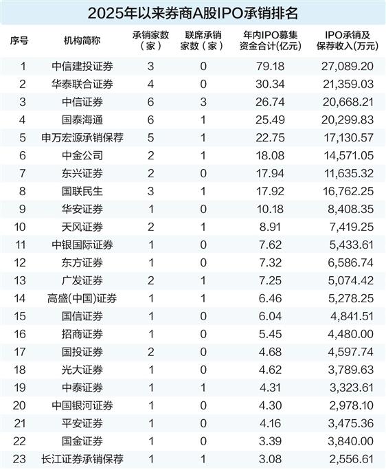 一直以来,首次公开发行(IPO)都是券商股权承销业务创收的主要来源。 证券时报记者注意到,A股IPO市场经历了2024年的低迷之后,今年以来有所回暖,预计券商投行业绩也将收获“安全垫”。年内,A股IPO无论是 ...