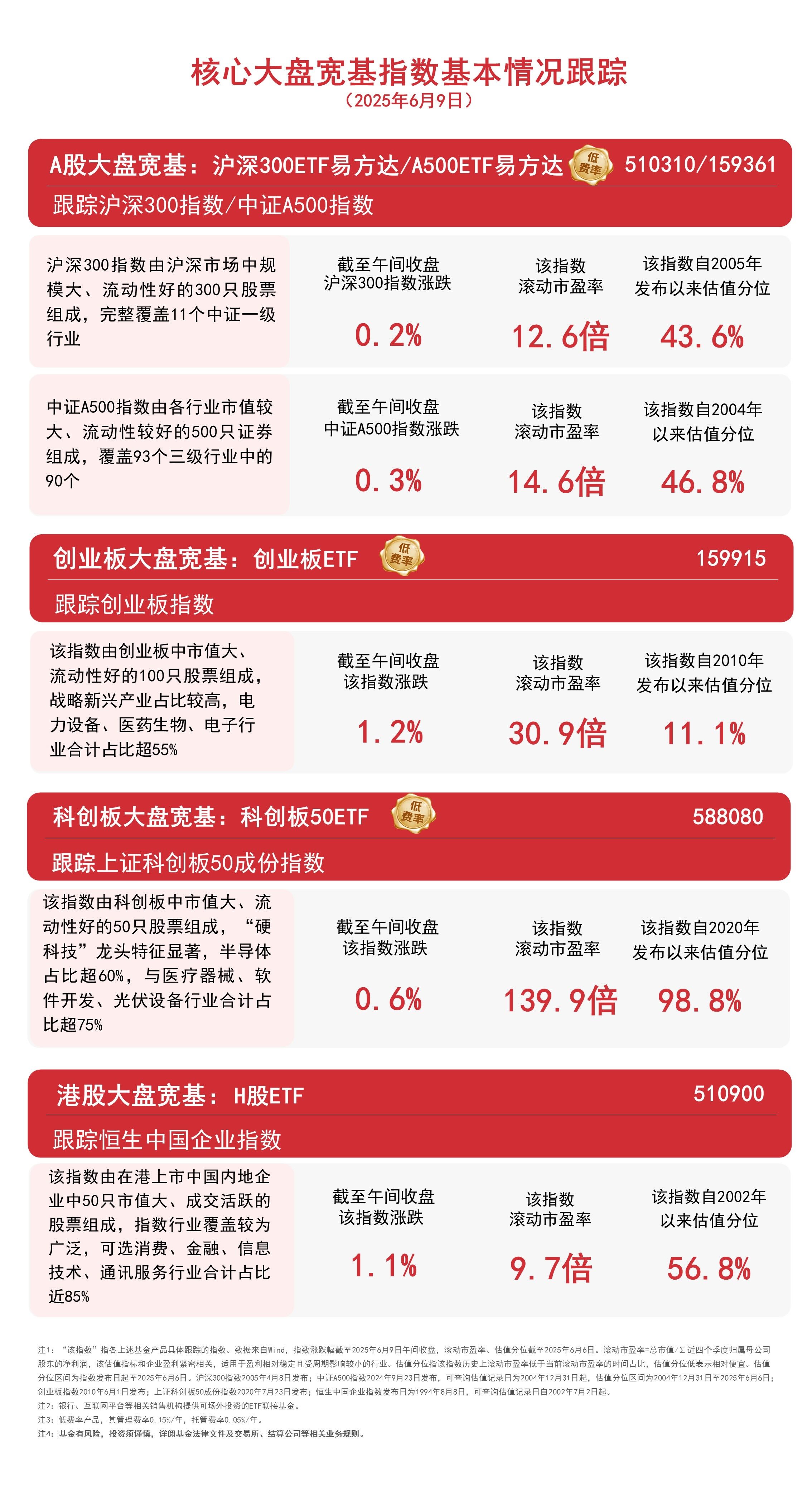 市场早盘上行,板块题材上,创新药、足球概念、稀土永磁、互联网金融板块涨幅居前,工业金属、银行板块跌幅居前;港股高开高走,医药板块领涨。截至午间收盘,中证A500指数上涨0.3%,沪深300指数上涨0.2%,创业板指数上涨1.2%,上证科创板50成份指数上涨0.6%,恒生中国企业指数上涨1.1%。