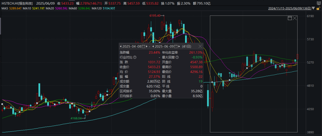 A股今日强势上扬,沪指盘中突破3400点,创业板指涨超1%;港股亦走强,恒生指数涨超1%重返24000点上方,恒生科技指数大涨近3%,自4月低点涨幅超过20%,迈入技术性牛市。 具体来看,三大股指盘中震荡走高,沪指一度收复3400点,创业板指、北证50指数涨超1%。截至收盘,沪指涨0.43%报3399.77点,深证成指涨0.65%报10250.14点,创业板指涨1.07%报2061.29点,北证50指数涨1.08%,沪深北三市合计成交13128亿元。 场内超4100股飘红,医药板块再度爆发,常山药业20%涨停,续创新高,海辰药业、舒泰神、睿智医药等均20%涨停;券商板块走高,信达证券涨停,东兴证券涨近5%;稀土概念强势,科恒股份20%涨停,九菱科技涨约19%盘中创出新高;体育概念热度不减,共创草坪斩获6连板。值得注意的是,比亚迪跌超3%,全日成交近90亿元,位居A股成交额首位。 港股方面,截至收盘,恒生指数涨1.63%,恒生科技指数涨2.78%。值得注意的是,恒生科技指数自4月8日以来累计涨幅超过20%,迈入技术性牛市。个股方面,金蝶国际涨约12%,腾讯音乐、快手涨超5%,美团、京东集团涨超4%,泡泡玛特涨超2%,续创历史新高。 ![]() 医药板块爆发 医药板块盘中大幅拉升,截至收盘,星昊医药涨超27%,盘中创出新高;常山药业20%涨停亦创出新高,海辰药业、舒泰神、睿智医药等均20%涨停。 ![]() 行业方面,当地时间2025年5月30日至6月3日,2025年美国临床肿瘤学会(ASCO)年会在美国芝加哥举行。随着美国临床肿瘤学会(ASCO)年会的召开和落幕,以及今年国内药企屡屡斩获大额全球授权交易,二级市场反响热烈。 光大证券指出,本次年会见证了中国药企在新药研发方面的活跃度和竞争力,其间多项成果和数据惊艳亮相,持续看好国产创新药的发展前景,特别是在临床进展和国际化布局方面有优势的企业。此外,5月7日以来,我国已推出一揽子金融政策支持稳市场稳预期,其中货币政策和财政政策的支持力度均较大。考虑到降息降准政策,业绩稳健增长、具备高股息特征的龙头药企具备较强的投资吸引力。 稀土板块活跃 稀土板块盘中走势活跃,截至收盘,科恒股份20%涨停,九菱科技涨近19%,创出历史新高;中科磁业涨超13%,北矿科技、英洛华均涨停。 ![]() 消息面上,商务部新闻发言人7日表示,随着机器人、新能源汽车等行业发展,各国对中重稀土在民用领域的需求量正持续增长。中国作为负责任的大国,充分考虑各国在民用领域的合理需求与关切,依法依规对稀土相关物项出口许可申请进行审查,已依法批准一定数量的合规申请,并将持续加强合规申请的审批工作。中方愿就此进一步加强与相关国家的出口管制沟通对话,促进便利合规贸易。 方正证券指出,出于供给收紧、指标体系改革、下游总需求相对稳定等多方面因素,稀土行业整体有供需改善的倾向,内盘稀土价格在今年以来企稳回升。同时,4月中国出台对中重稀土物项(包括含镝铽元素的钕铁硼磁材)的出口管制政策,引发海外市场的供需失衡、稀土价格飙升,并加剧了海外市场对安全库存的中枢抬升渴望;而5月中旬以来该管制政策陆续放开,海外市场有望出现激进的补库行为,“抢出口”行情下中重稀土的内外盘价差或逐步收敛,同时作为钕铁硼主要原材料的镨钕轻稀土元素也有望迎来价格的上行动力。往后看,建议关注我国今年稀土指标的发放情况,以及中重稀土出口管制放缓下海外的需求情况。预计稀土价格有望继续温和上涨。 体育概念热度不减 体育概念盘中再度走强,截至收盘,康力源20%涨停,金陵体育涨超15%,创源股份涨超12%,粤传媒、元隆雅图、共创草坪等均涨停。 值得注意的是,金陵体育近7个交易日已累计大涨超150%。公司5日晚间提示,近期,江苏省城市足球联赛的火爆情绪蔓延至A股市场,公司股票波动严重异常,存在市场情绪过热的情形,可能存在非理性交易行为,交易风险较大,存在下跌的风险。经自查,公司目前生产经营活动一切正常,市场环境、行业政策没有发生重大调整。 共创草坪已连续6个交易日涨停,公司6日晚间提示,近期公司股票交易价格涨幅较大,短期涨幅与同期上证指数偏离较大,可能存在市场情绪过热,非理性炒作情形。公司产品以出口为主,2024年公司境外收入占营业收入的比重为88.62%,美国关税政策目前不确定性较强,公司将持续关注并评估具体影响,采取措施灵活应对,敬请投资者关注该风险,理性投资。 共创草坪还表示,公司关注到近期江苏省城市足球联赛受到市场关注的热度较高,公司主营业务为人造草坪,公司产品主要分为休闲草和运动草两大类。2024年,公司休闲草和运动草的收入分别为20.52亿元和5.94亿元,占主营业务收入比重分别为69.93%和20.25%,境内业务收入占比为10.8%,休闲草品类目前仍为公司收入的主要来源,国内相关足球体育赛事的举办对公司经营活动和经营业绩不会产生重大影响。 (文章来源:证券时报) |