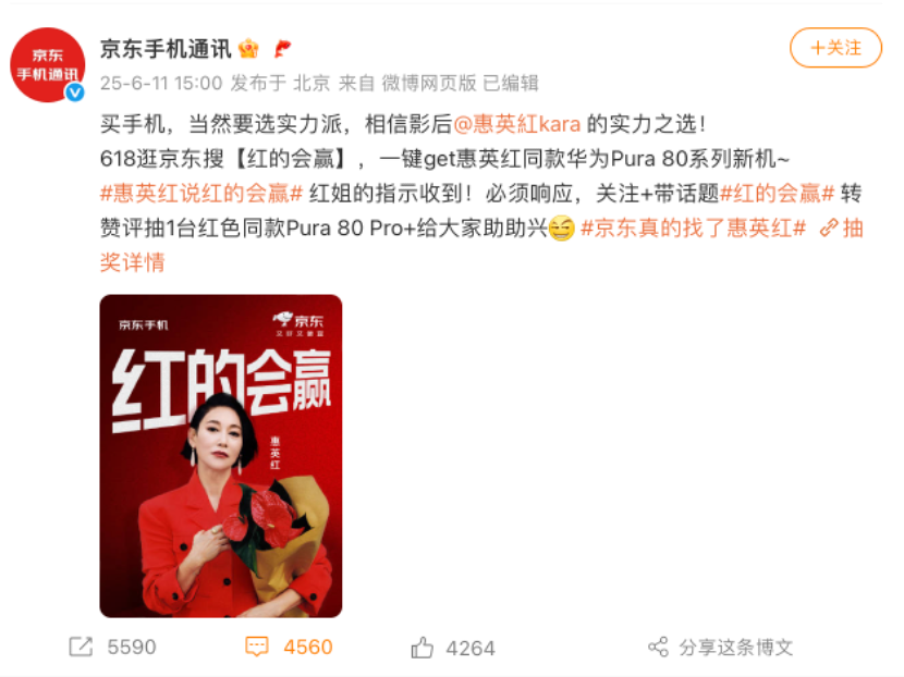 继外卖补贴大战后,近期巨头们又在网络上掀起一波营销大战。 6月11日,“京东真的找了惠英红”登上微博热搜。同日打开京东APP,能看到惠英红一身红装的开屏广告。 至此三家外卖巨头的营销商战达到高潮,网友集齐红黄蓝三色明星海报。 ![]() 图源:美团、饿了么、京东官方海报 这一轮开端是5月19日,美团外卖邀请黄龄推出围绕外卖咖啡场景的营销活动“每日大咖”,并推出《夜上海》沪语版改编MV《外卖黄的更灵》,以“外卖黄的更灵”为广告口号,将品牌色与黄龄名字巧妙链接,一语双关。 ![]() 图源:美团外卖x黄龄 MV 美团这波联动一经发布,令网友直呼“神级策划”,更有网友在评论区为饿了么献计,喊话饿了么请蓝盈莹出战。 本以为只是网友的打趣,却没想到饿了么火速“听劝”,6月1日官宣蓝盈莹为“饿了么必赢官”,打出“蓝的一定(赢)”口号,还与蓝盈莹合拍了一支“blue win win”的Vlog。 ![]() 为了推高这波营销,饿了么直接向100位转发网友平分10000元。同时,饿了么给提建议的网友,送出18.8x365天全年红包奖励。这一波好感度拉满,截至目前饿了么这则官宣博转发已破万。 ![]() 巨头们的火速接梗,令网友讨论热情攀升,不少热心网友开始为京东支招如何才能扳回一局。 网友们给出了“韩红(还红)”“尹正(又赢又挣)”等建议,洪欣、全红婵、刘畊宏、洪金宝等也因名字里带有“红”的谐音被网友提及。 其中呼声最高的是惠英红,谐音“会赢红”,惠英红在影坛的地位与“红运当头”的吉祥寓意形成双重加持。 ![]() 京东也“不负众望”捕捉到了这个热点,将网友的奇思妙想转化为现实,并在6月11日进行了官宣。 不过,京东找惠英红并非为外卖业务站台,而是牵手京东手机。此次合作时间点恰逢京东618促销周期,与华为新款手机发布形成联动。 ![]() 图源:京东手机官方微博账号 在当日热搜话题下,有用户调侃“朴实无华的商战就是用名字玄学展开”,还有网友在京东手机官方微博号下评论称,“今天还在说黄蓝红之争,没想到就请了惠英红!赶紧去京东下单了。” 演员惠英红也十分配合,在社媒发文感谢热心网友,“最近都在帮我接商务了”,“我觉得红的会赢”,并表示自己接商务就像挑剧本一样挑剔,在京东挑选华为新款手机送给网友,还带上了#红的会赢#的话题。 ![]() 令人没想到的是,当价格战卷不动时,带有娱乐性质的商战反而成为消费者喜闻乐见的形式。网友自发成为品牌自来水,带来一波巨大流量。 实际上,在这波突破常规的营销商战之前,巨头们在外卖领域通过价格补贴贴身肉搏。 4月11日,京东外卖上线了百亿补贴。4月30日,饿了么宣布即日起开启平台“饿补超百亿”大促。同时淘宝天猫旗下即时零售业务“小时达”升级为“淘宝闪购”,将联合饿了么共同加大补贴。美团则在5月27日宣布将携外卖和闪购两大业务重点参与今年618,面向全体消费者发放618元神券包。 4月22日,京东外卖宣布当日订单量突破了1000万单。5月26日,淘宝闪购联合饿了么宣布,日订单数已超4000万;6月1日“京东黑板报”官方公众号消息,京东外卖日订单量已突破2500万单。 5月,市场监管总局会同多部门针对当前外卖行业竞争中存在的突出问题,约谈京东、美团、饿了么等平台企业。要求相关平台企业严格落实主体责任,主动履行社会责任,加强内部管理,合法规范经营,公平有序竞争,共同营造良好市场环境,切实维护消费者、平台内经营者和外卖骑手的合法权益,促进平台经济规范健康有序发展。 在该一轮监管强化后,巨头们开始将目光从卷价格转向卷营销。在流量瞬息万变的营销战场,“品牌听劝整活”成为破圈新法则。 清华大学品牌营销研究员孙巍向时代财经表示,相对于广告营销、明星代言、品牌广告等多种营销传播方式,“听劝”这种用户参与的社会化营销方式的确更具性价比,而且由于用户“被品牌重视”而走心,容易在社群上形成广泛的曝光和情感沟通。品牌通过关注用户的诉求并让用户成为意见焦点,从而赢得用户的参与并吸引社会群体的眼球。 (文章来源:时代财经) |