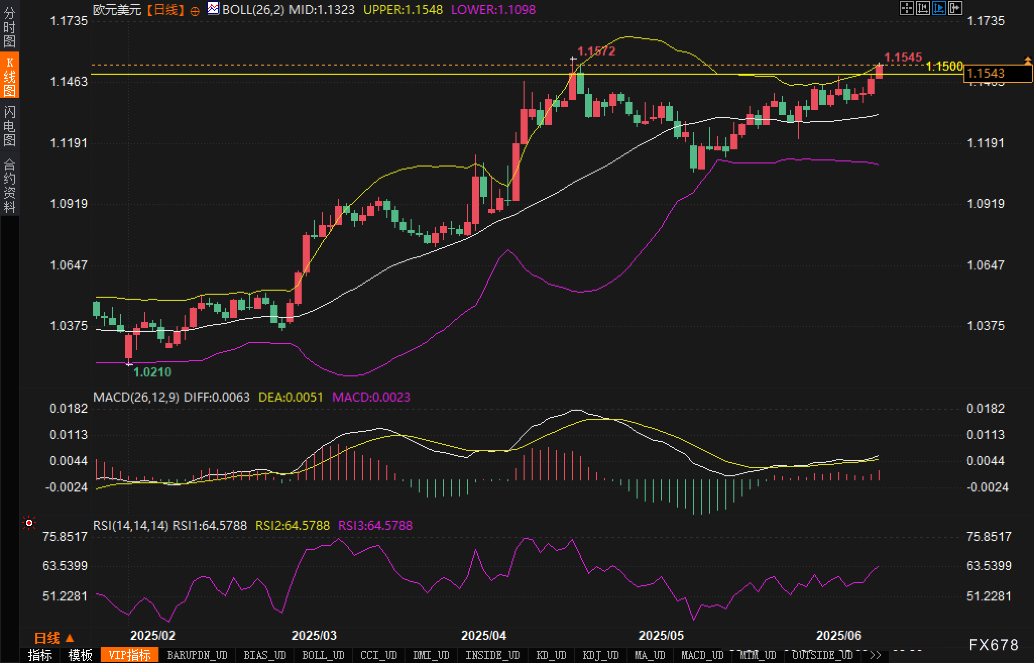 周四(6月12日),欧元/美元汇价欧洲时段延续升势,逐步逼近前高水平1.157。美元持续承压,源自市场对美联储年内降息预期升温,以及围绕美国对外贸易政策的不确定性升高。美国总统特朗普近日表示将在未来一至两周向贸易伙伴发函,拟通知单方面新的关税措施,令市场再度陷入担忧情绪。此外,美国5月CPI年率录得2.4%,不及预期的2.5%,强化了美联储9月重启降息周期的押注。 ![]() 基本面分析 从基本面角度看,当前美元走势疲软,主要受到以下三重压力影响: 首先,通胀数据不及预期。美国5月CPI环比上涨0.1%,核心年率维持在2.8%不变,连续第二个月未能突破上行预期,市场解读为通胀压力放缓,从而强化对美联储在2025年下半年继续降息的预期。 其次,特朗普政府不断变动的对外政策,尤其是其对关税政策的模糊表态,使得市场对未来数月的贸易环境充满不确定性。这类不确定性对美元构成压制,市场避险倾向转向非美资产。 再次,尽管当前美国10年期国债收益率仍处于4.40%的高位,但其从4.60%回落的走势,预示着债市已开始计入潜在的宽松政策预期。 与之对比,欧元近期受到多重利好支撑:欧洲央行的表态暗示短期内不急于再次降息,且近期欧洲部分经济数据表现稳健,在全球权益市场风险偏好回暖的背景下,欧元自然成为市场选择的“多头”工具之一。 技术面: 从图表来看,欧元/美元当前价格位于布林带上轨(1.1548)附近,布林带呈现扩张状态,布林带宽度扩大,反映波动率上升,暗示后市可能存在放量突破的可能。 ![]() 分析认为短线支撑关注1.1500和1.1440;若跌破,则需警惕回测20日均线(约在1.1370);若有效突破1.1572,则上方空间或看至1.17。 市场情绪观察 当前市场情绪偏向乐观,尤其在“去美元化”议题重新被市场热炒之际,欧元作为美元的主要对手盘获得了更多配置青睐。汇价的持续上攻也体现了市场对美元潜在宽松路径的提前反应。 然而,市场情绪虽向多头倾斜,但并非无忧无虑。特朗普政府的不确定性行为模式令市场始终保持“边走边看”的心理,尤其是在“7月9日关税生效”这一关键时间点前,来自美国高层的变动言论都可能触发短线避险升温,从而打乱当前趋势节奏。 此外,技术面上接近阶段性高点,分析认为部分交易员也可能选择逢高减仓,令短线波动放大。 后市展望 短期展望: 分析认为若美国PPI和就业数据进一步疲软,欧元/美元汇价有望放量上破1.1572关键阻力,并进一步挑战1.17;否则将陷入1.1450-1.1570之间的箱体震荡格局。 长期展望: 分析认为若美联储如市场预期在9月启动降息周期,而欧洲央行保持中性偏鹰基调,则欧美利差有望收窄,进一步支持欧元中期走势向上。但需警惕市场对欧洲经济复苏力度的重新评估,一旦数据反转,则汇价存在重新回测1.13甚至1.11区域的风险。 ![]() |