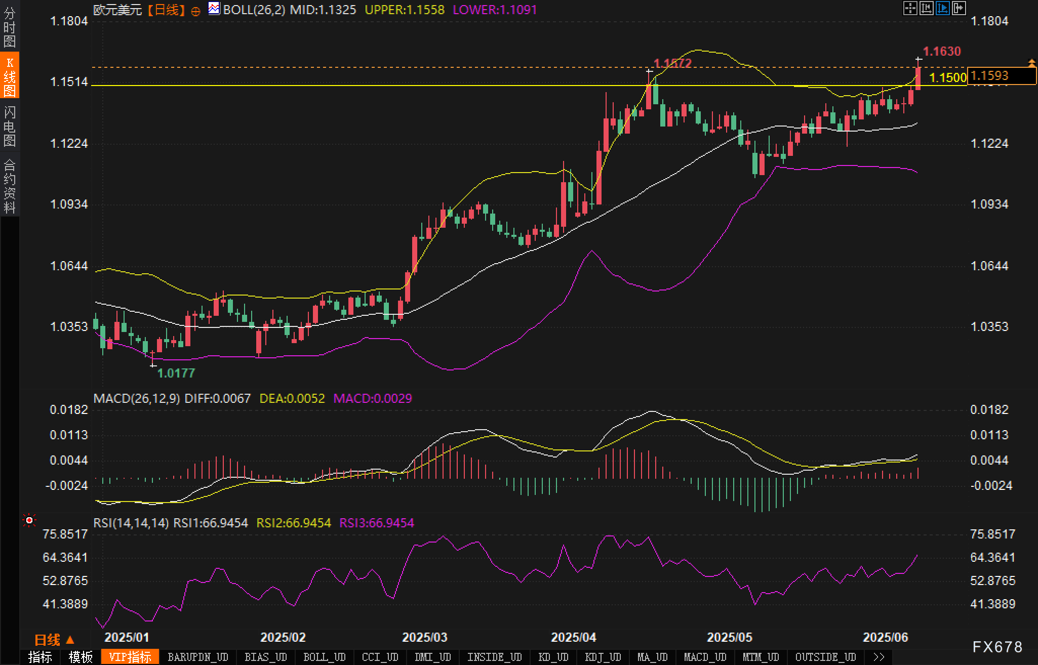 周四(6月12日),欧元兑美元汇价持续走强,日内突破1.1600整数关口,为2021年11月以来首次触及该价位。汇价最高升至1.1630,受益于美元持续走软与欧元区经济韧性增强的共同推动。美国最新初请失业金数据不及预期,同时地缘政治紧张加剧,加剧市场避险情绪,美元受压明显。 ![]() 欧洲央行副行长路易斯·德金多斯表示,尽管欧元区面临风险因素,但整体经济表现仍较为稳健。他特别提到劳动力市场的强劲支撑,与此同时,他强调若欧盟进一步推进一体化进程,欧元在国际结算与储备体系中的角色将逐步提升。 从外围因素来看,据路透,近期中东局势骤然紧张,美国与伊朗的核谈判陷入僵局,美国政府呼吁本国公民撤离相关区域,令市场风险情绪升温。与此同时,美国总统就贸易政策释放相互矛盾信号,令市场前景更加扑朔迷离。美国初请失业金人数达到24.8万,高于预期的24万,加剧市场对美国经济放缓的担忧,也进一步压制美元走势。 技术面: 从日线图来看,欧元/美元汇价在突破1.1500一线后持续上行,并一度站上1.1630水平,当前突破构成有效上行突破信号。 ![]() MACD指标方面:MACD线与信号线金叉,柱状图动能呈现逐步放大迹象,暗示短线可能进一步走高。 RSI相对强弱指数显示66.94,处于强势区但尚未进入超买区域(>70),显示多头力量仍占上风,尚未出现明显顶部背离信号。 整体而言,当前欧元兑美元技术面呈现强势格局,分析认为若能守稳1.1600上方,则有望进一步测试1.1800区域。但若出现假突破并回落至1.1500下方,则需警惕多头动能衰减后的反转可能。 市场情绪观察: 市场对美元的信心正在被不断侵蚀。分析认为避险属性因美伊局势和地缘政治冲突而增强,但美元并未如往常般受益,反映出市场对美国内部经济指标的担忧正占据主导地位。同时,交易员情绪偏向短线抛售美元,转而寻找收益更高或更具增长潜力的货币。欧元因欧元区稳定的通胀预期与强劲的劳动力数据而成为近期资金流入的主要方向。整体情绪偏向“多头市场情绪”,但在技术面临关键阻力区域的情况下,亦存在“假突破”后的快速修正风险。 后市展望: 短期展望: 分析认为若汇价成功守稳1.1600上方,并继续放量上攻,则下一技术阻力将指向1.1720前期高点,进一步目标为1.1800整数关口。而若出现动能衰竭或地缘冲突激化导致避险美元回流,则可能重新跌回1.1500一线,形成“假突破”信号,进入短期回撤整理。 中长期展望: 分析认为只要欧元区经济数据未出现明显疲软,且欧洲央行维持中性偏鹰立场,欧元可能在美元系统性弱势下,维持中期上涨趋势。若未来美国宏观数据持续疲软,美联储转向降息周期,欧元则有望迎来更为广阔的中线升值空间。反之,一旦美联储重申鹰派政策立场或中东冲突升级引发全面避险浪潮,欧元将面临回撤风险。 ![]() |